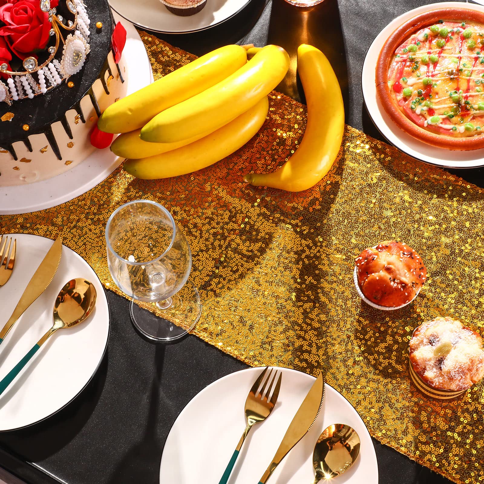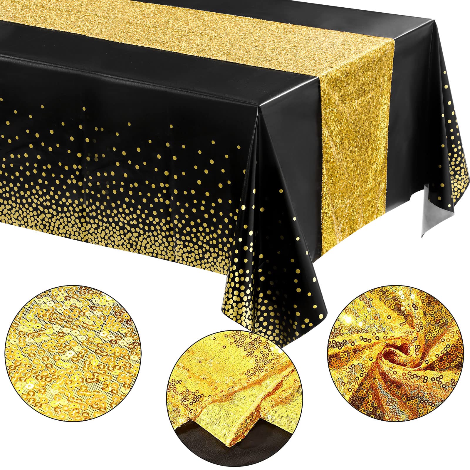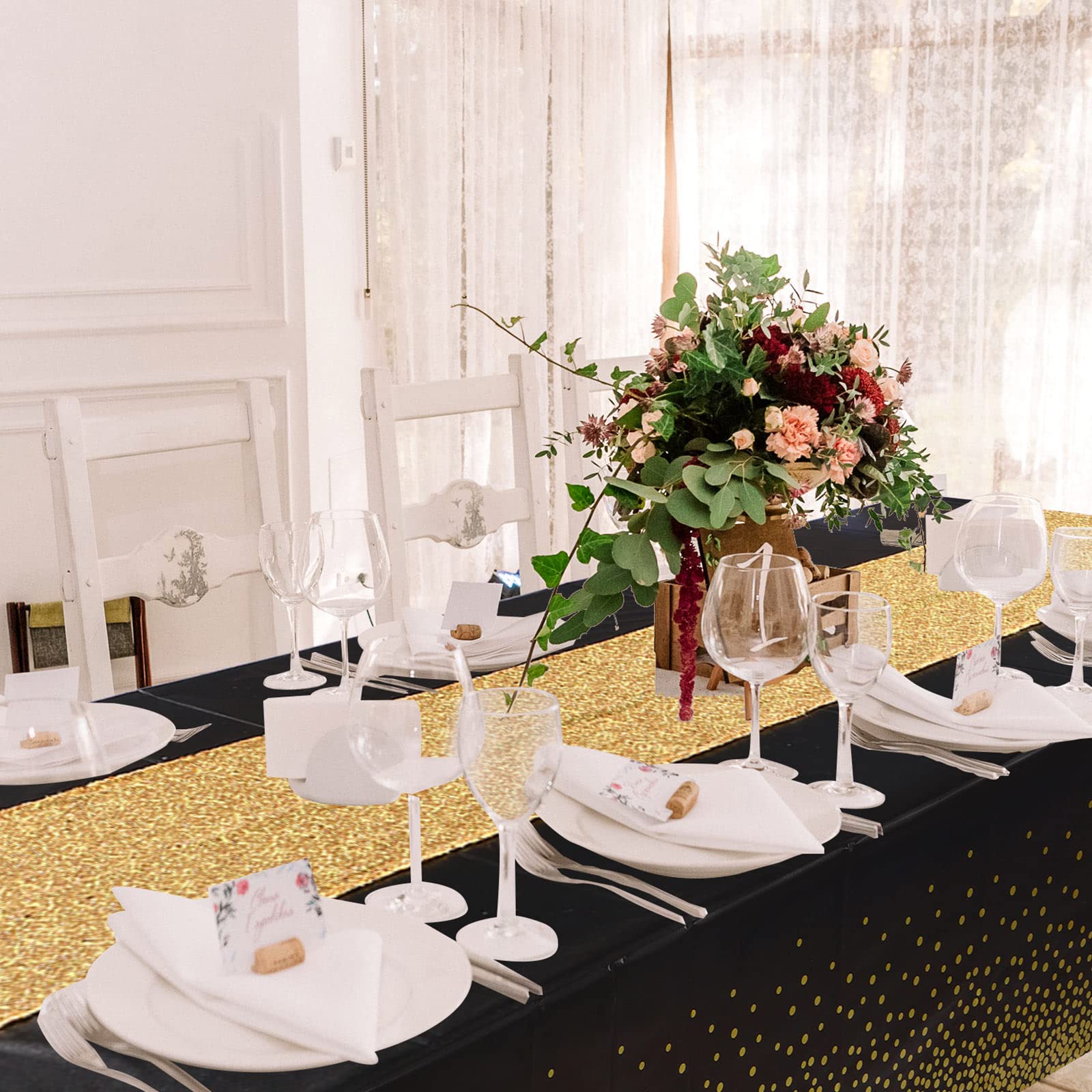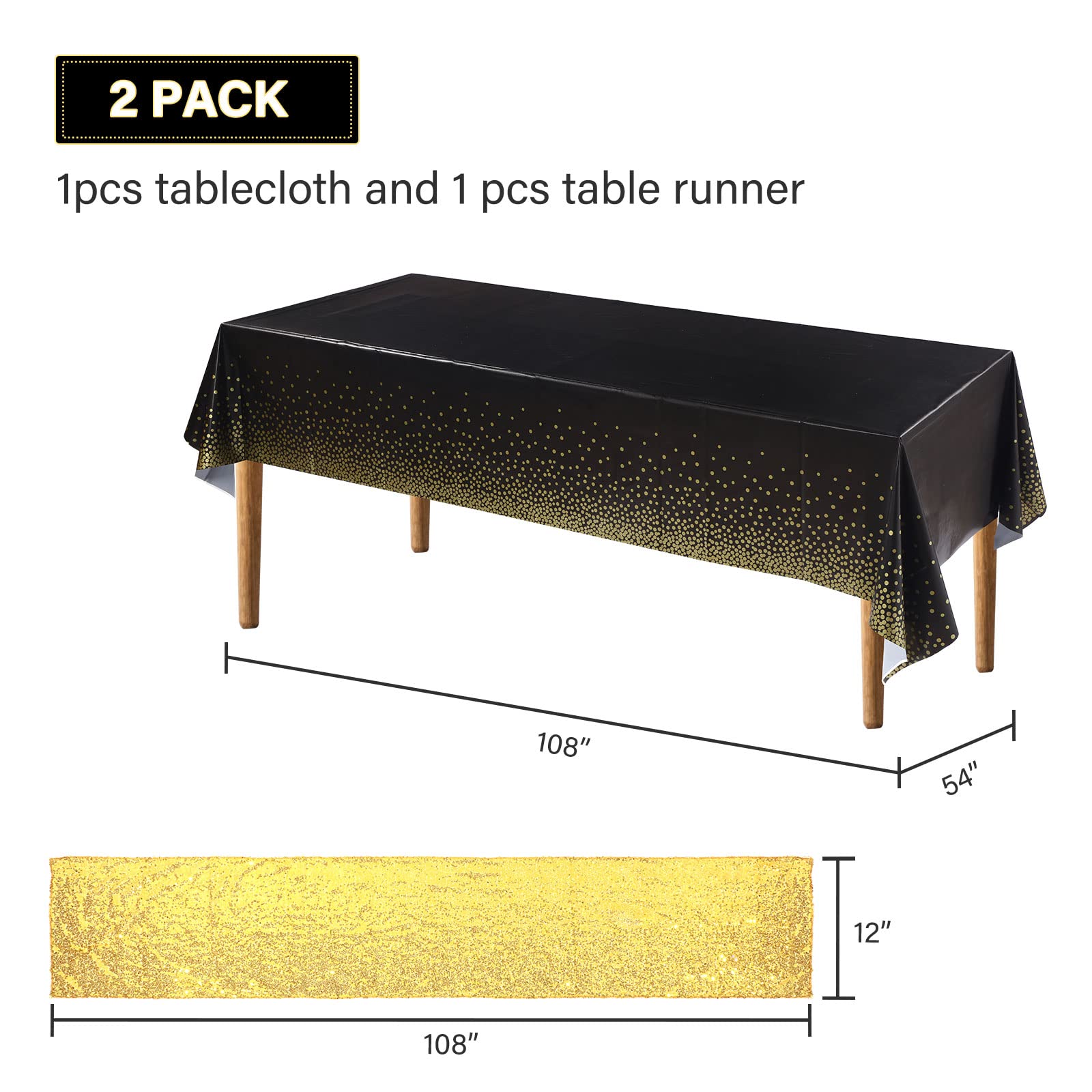 Dimension information: the glitter tablecloth measures approx. 12 x 108 inches, and the other plastic table cover is about 54 X 108 inches, large enough for you to decorate your table, moreover, suitable for most styles of tables