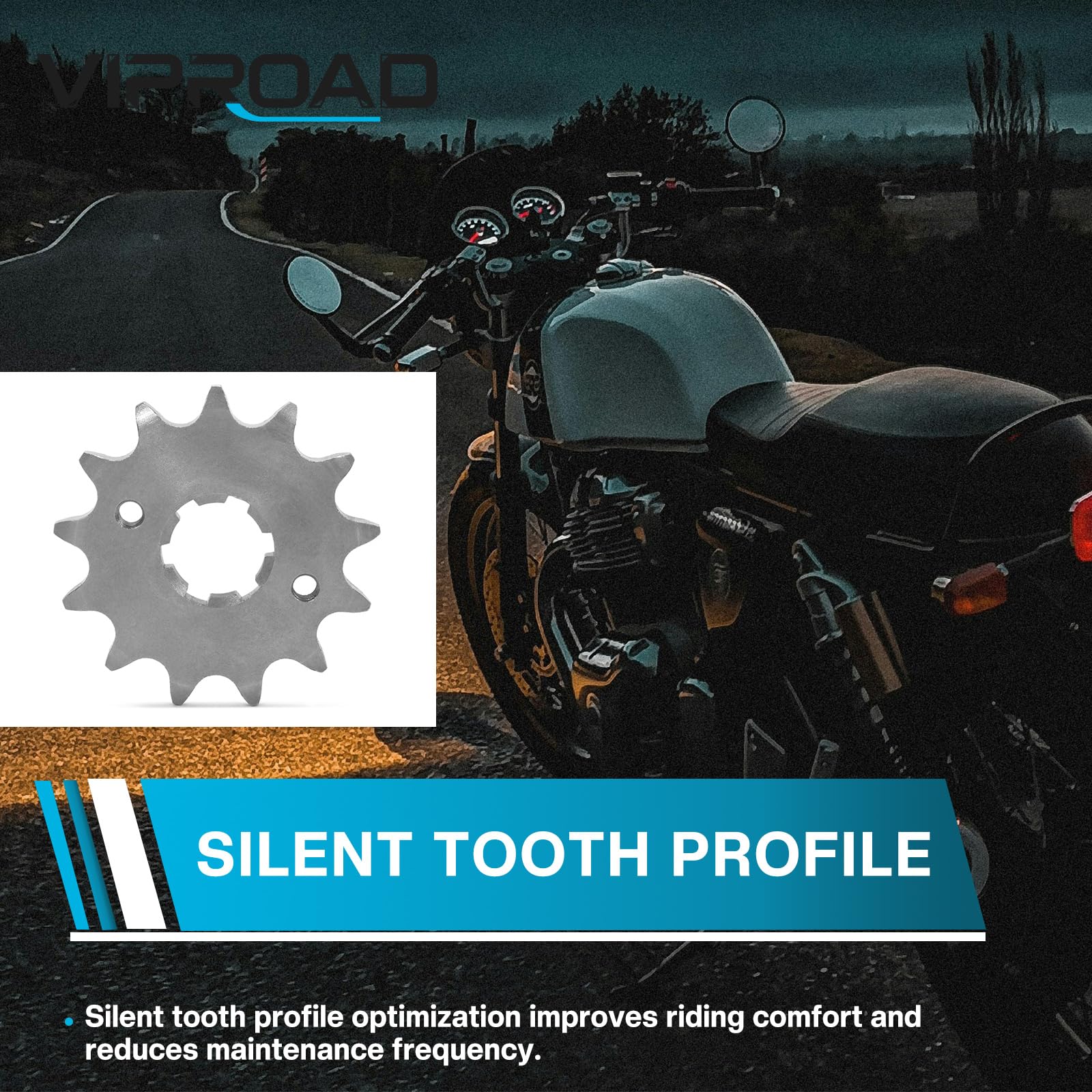 Tooth surface hardness and wear resistance are improved:Made from Light Weight Steel 20CRMNTI.The Viproad sprocket provides smoother power delivery,reduces chain shake and wear,and reduces operating noise.