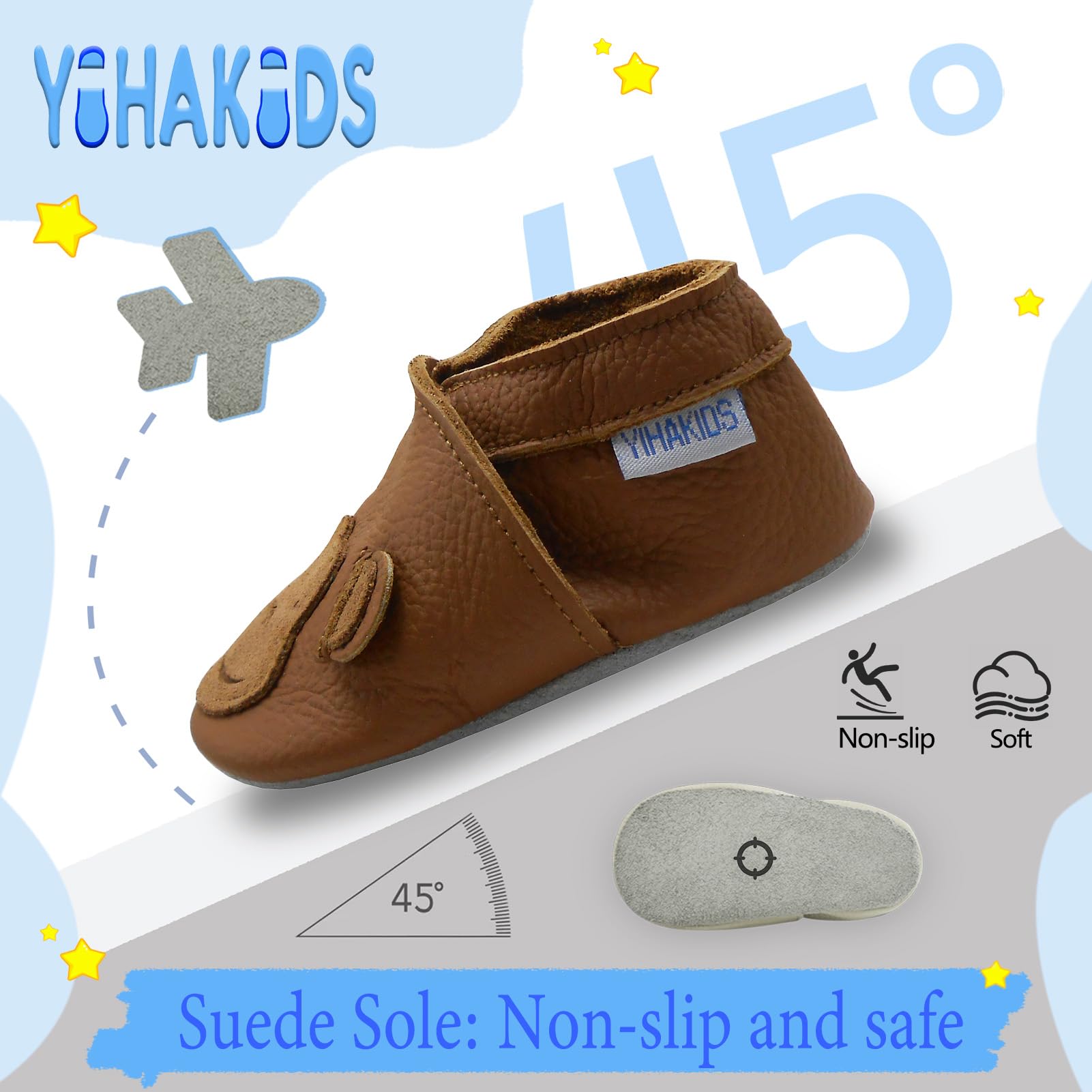 FOOT HEALTH: YIHAKIDS baby soft-soled crib shoes feel just like being barefoot, without restricting the baby's developing feet, allowing them to bend flexibly as they learn to walk, and providing room for their feet to grow.