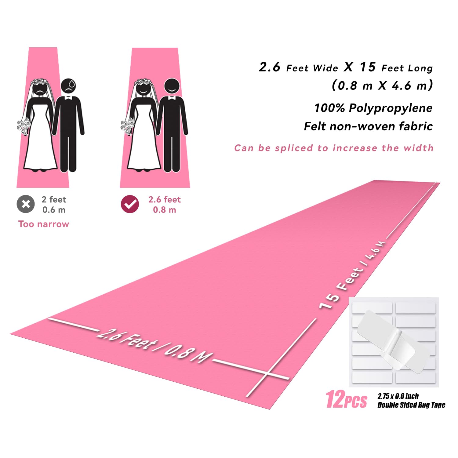 SUITABLE SIZE: We have designed a more suitable width, 2.6ft (0.8m) X 15ft (4.57m). Compared to the 2ft (0.6m) width, It is more suitable for two adults to walk on it side by side. It is more able to blend in and accent your event site perfectly