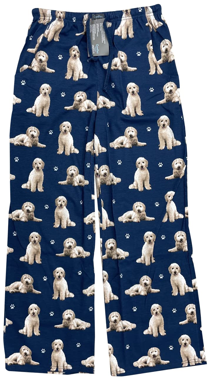 Description Goldendoodle Unisex and Lightweight Pajama Bottoms. Sleep in style and cozy comfort with these classic cotton blend pajama pants. Fits a wide range of people with two pockets on the sides and draw strings. Available in three sizes. Medium, Large and X-Large. Comfies is focused on creating high quality and affordable and long lasting everyday clothing you can rely on. Our pajama bottoms are stylish with amazing colors. The pictures of the Goldendoodles are screen printed. You can wash them over and over again but they won’t fade. Each piece is put to the test to maintain the highest standards in quality and comfort If you have a Goldendoodle dog you owe it to yourself to buy these pajama bottoms. These pajama bottoms also make a perfect gift for anyone that has a Goldendoodle. These pajama bottoms will keep you relaxed after a whole day of hard work. Our Goldendoodle Pajamas are made from high quality fabric and they will last you a long time. Put them your morning and evening routine will be more pleasurable. They are made with imported 65% Cotton, 35% Polyester - Straight-leg lounge pant with elasticized waist and drawstring tie and two pockets