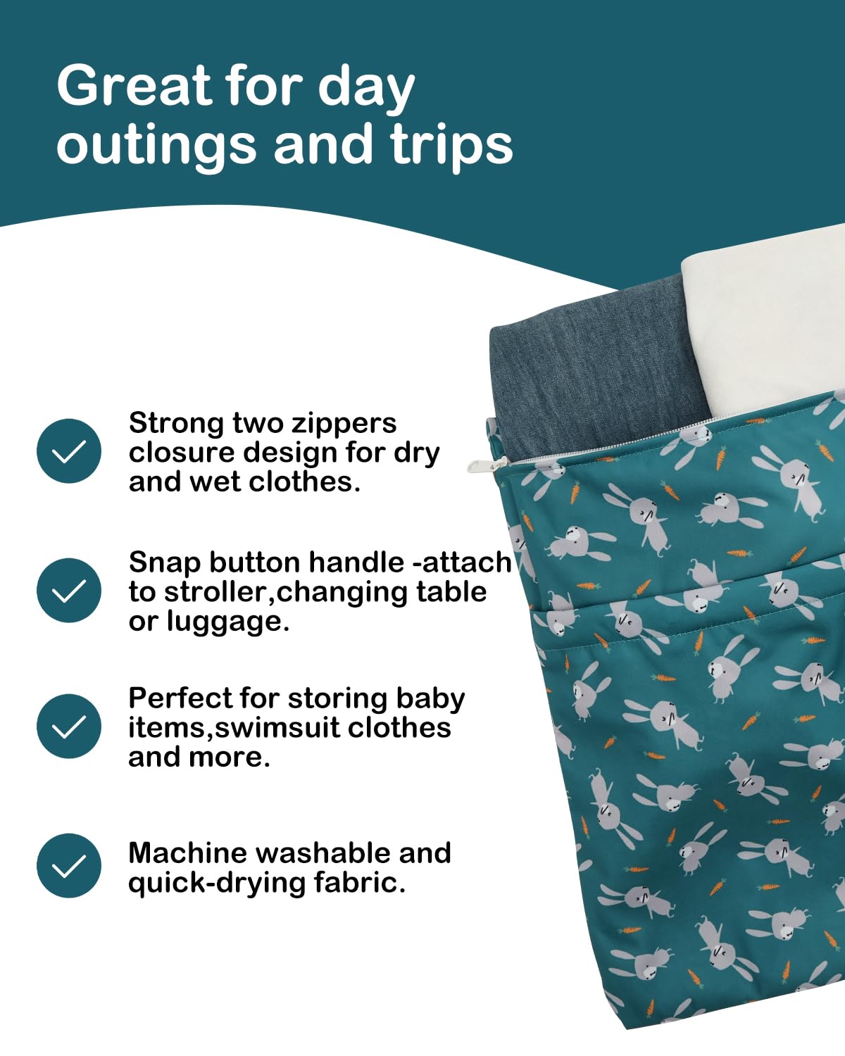 Multi-functional Bags-A truly wonderful bag that allows you to carry your wet and dry items in the same bag. Carry all your items in one bag while keeping your dry items dry and your wet or soiled items separate. Truly an all in one bag! They can be used as diaper wet dry bags,travel bags,storage bags,cosmetic bags,handbags,wash bag,organizer bags.