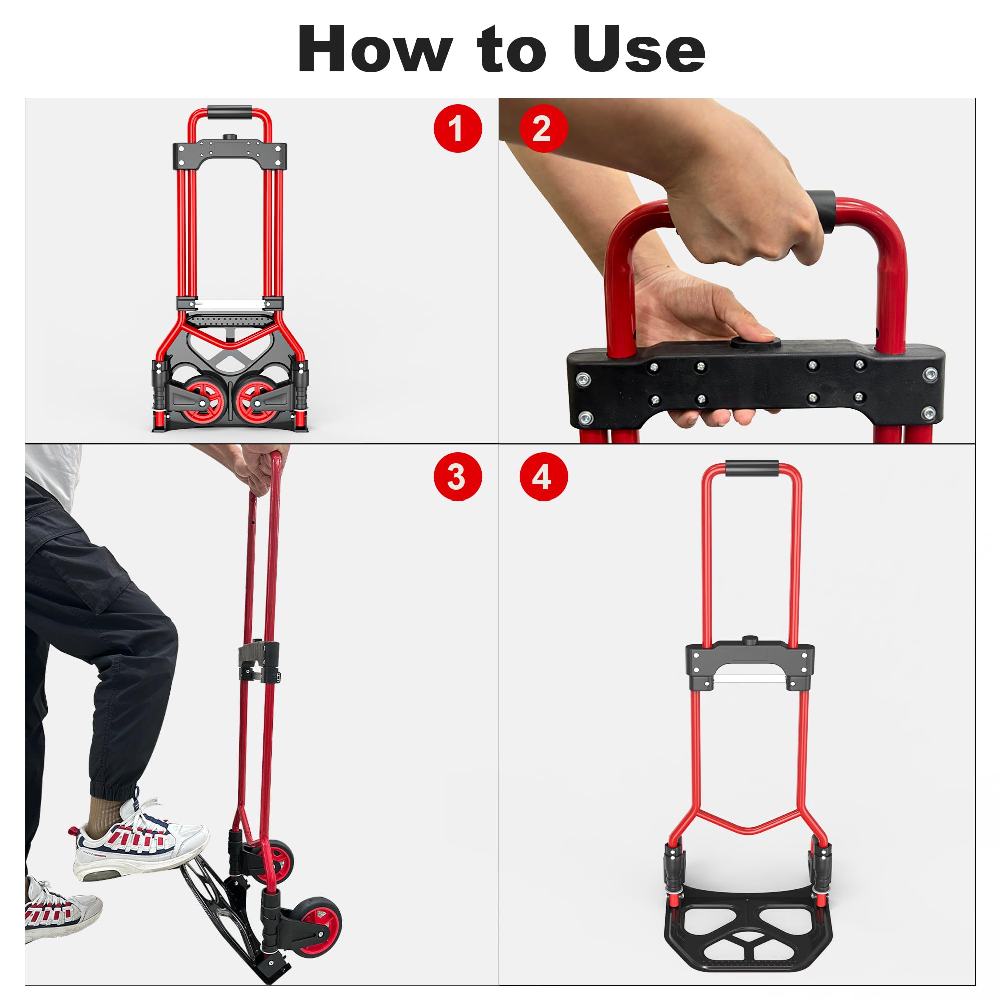 Folding Hand Truck Dolly Cart, 180LBS Portable Aluminum Hand Truck Foldable Dolly with Telescoping Handle and Elastic Cord for Luggage, Boxes, Functionality Folding Dolly for Home, Moving, Black Red