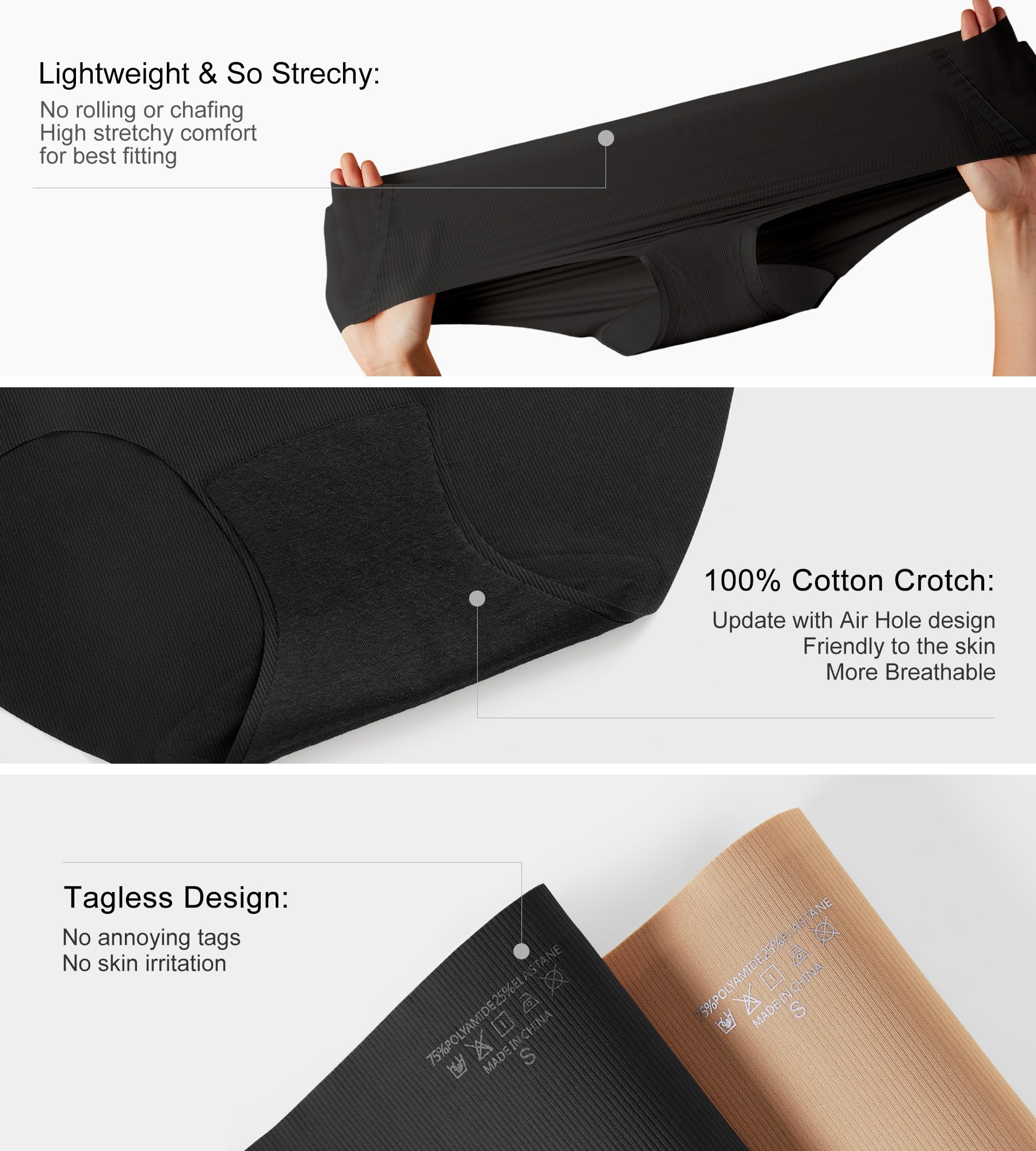 ❤【So Thin Lightweight Microfiber Ribbed Material】 SHARICCA seamless underwear for women is made with 75% polymide and 25% elastane microfiber ribbed material, which is so thin, lightweight, supper soft and stretchy. Our comfy womens no show underwear feels like a second skin, that you might even forget you're wearing them. Breathable, comfortable, and cooling all day long, no seam underwear for women keep you dry and fresh, making them the perfect pick for summer wearing.