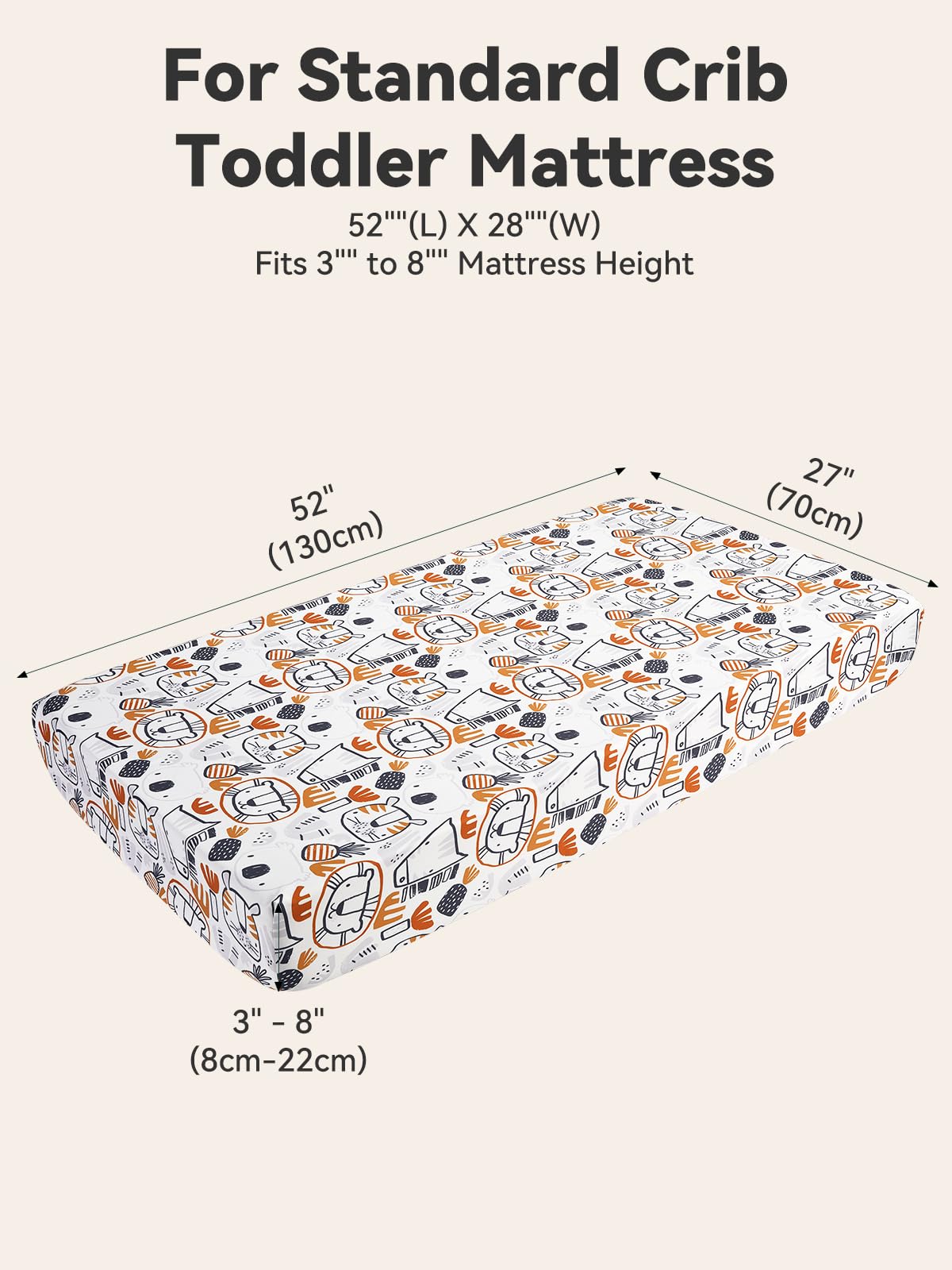 Fits perfectly: Comes with 28 "x52 " and fit almost any crib mattress on the market. Up to 8" Deep pockets ensure that the Sheet wraps tightly around the mattress and won't shift no matter what.
