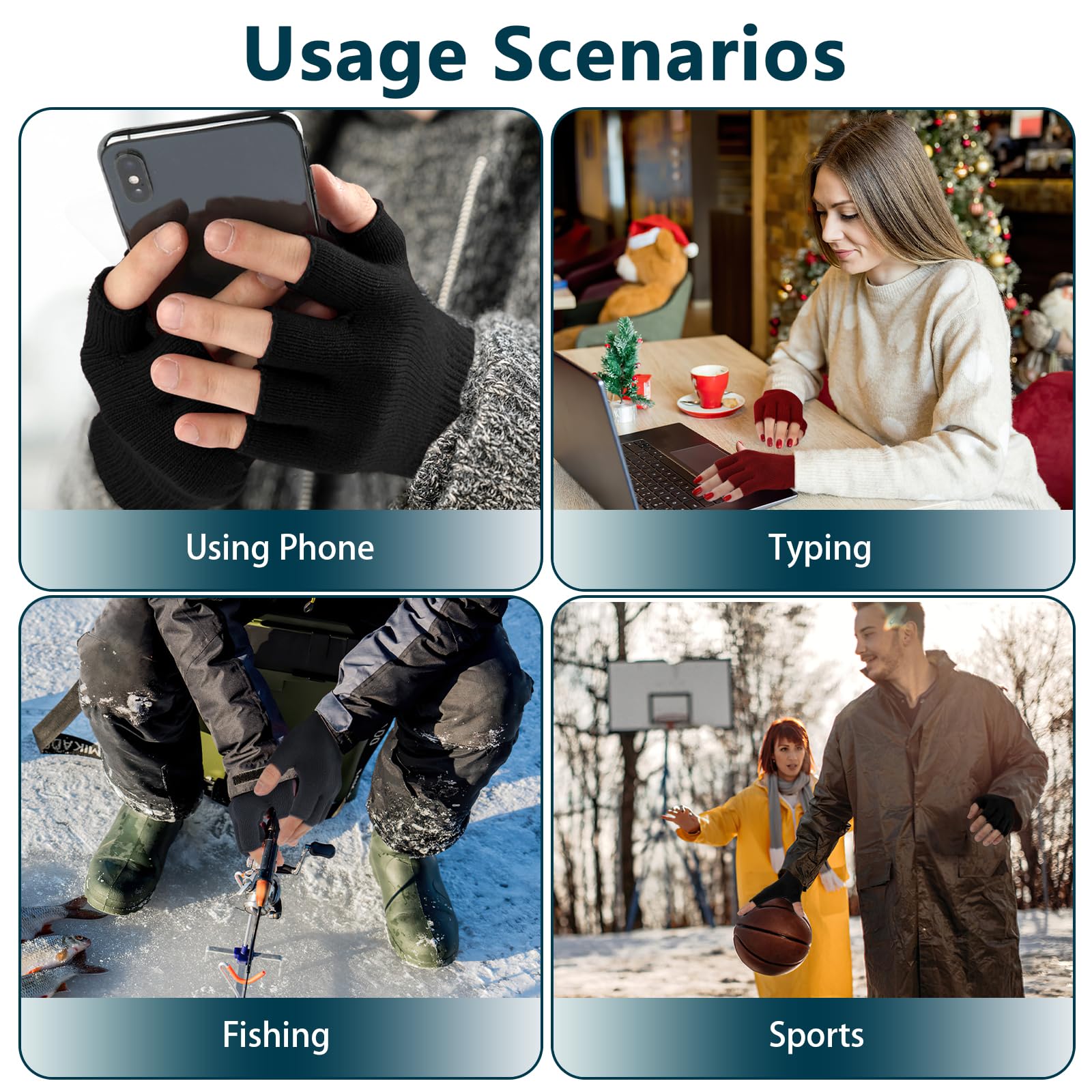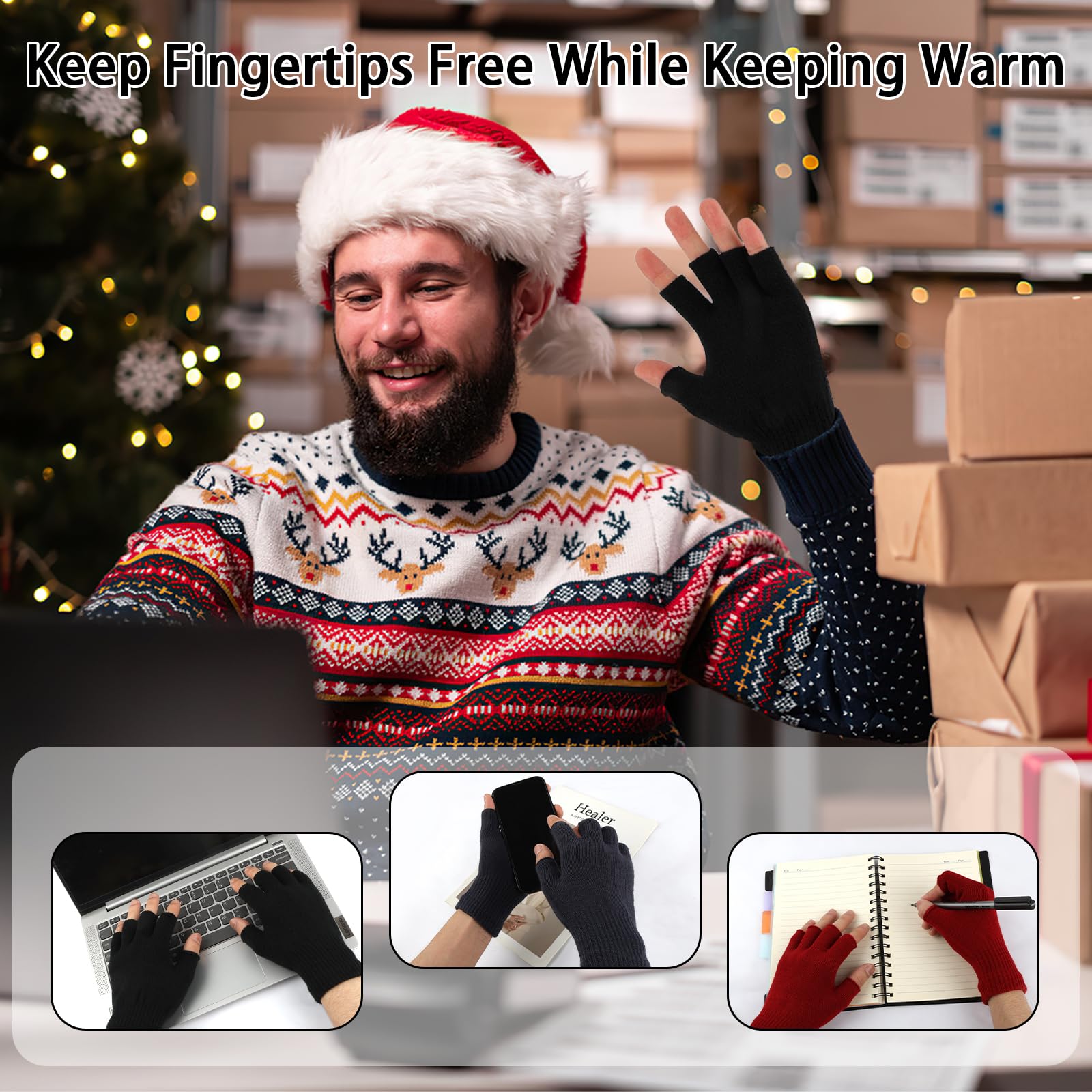 【Fingerless Design】Keep your fingertips flexible and warm, making them ideal for students, office workers, postman, cyclists, writers, outdoor musicians, or anyone who frequently uses mobile devices or needs dexterity in cold weather