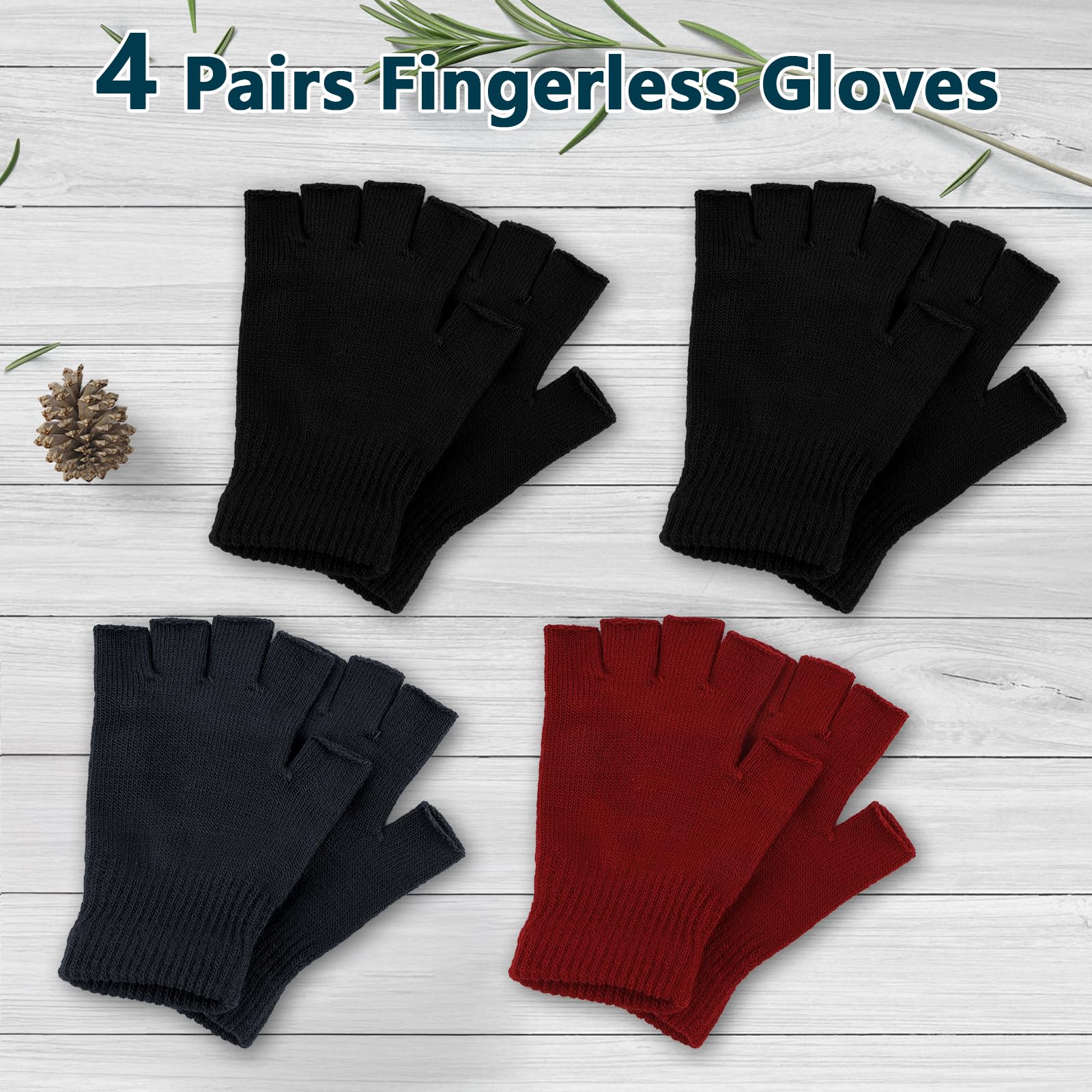【4 Pairs Set】Includes 4 pairs of fingerless gloves, which are convenient for daily replacement or sharing with family and friends, meeting various needs such as winter commuting, office, and outdoor activities