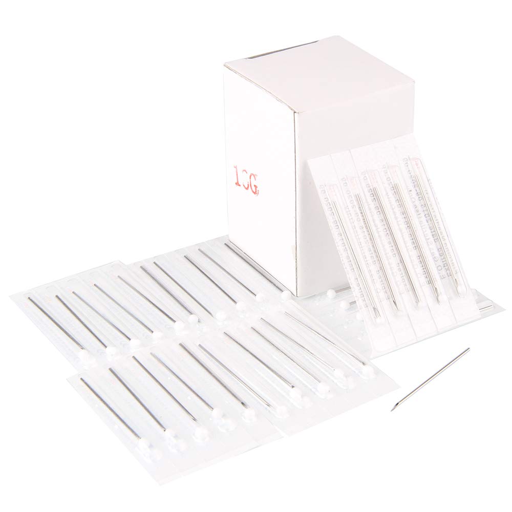 Package: each body piercing needle with individually packed and sealed pack, new and unused. Each needle is 100% sterilized using E.O gas