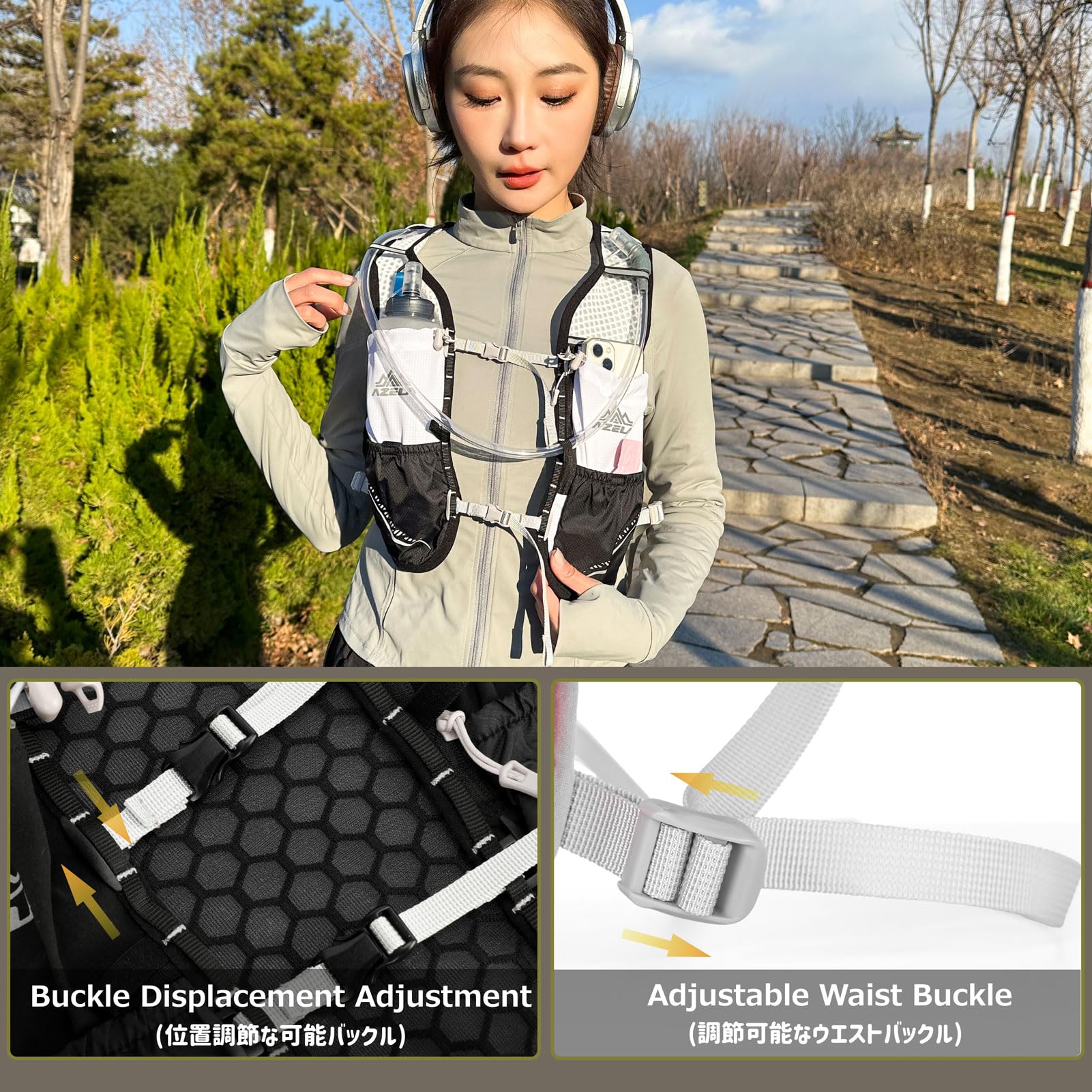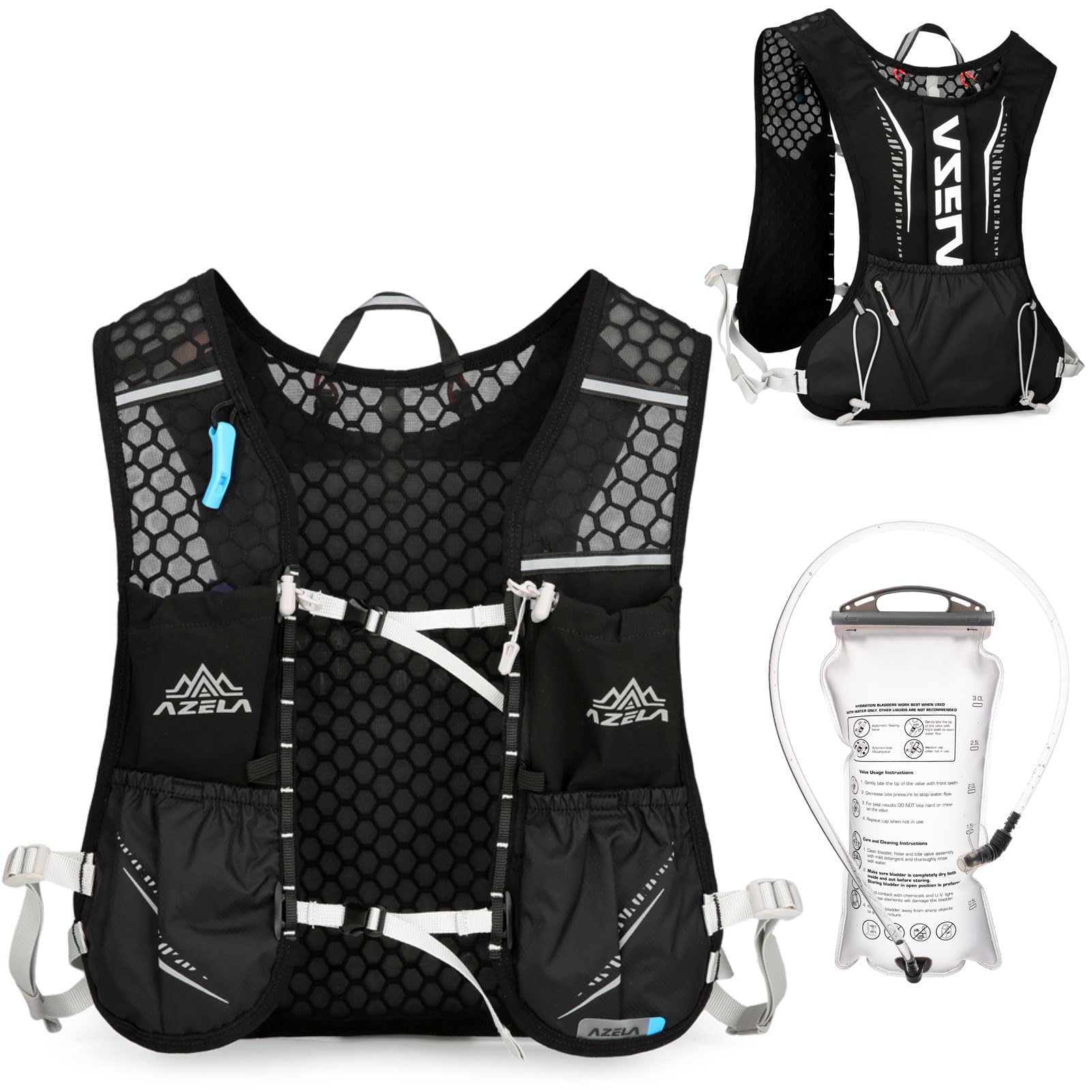 Azarxis Hydration Vest Backpack Running Water Pack Daypack 7L for Women Men Lightweight Running Hiking Cycling Trail Race (Black + 1.5L White Water Bladder)