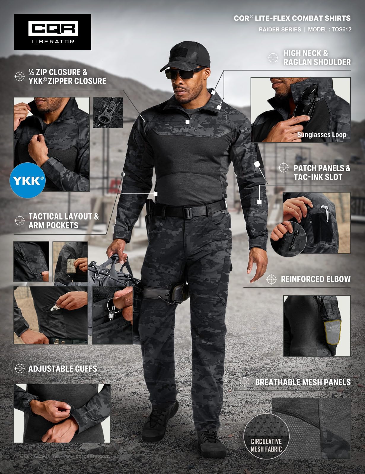 CQR Men's 1/4 Zip Combat Shirt Series inspired by traditional duty uniform for modern-day tactical use.