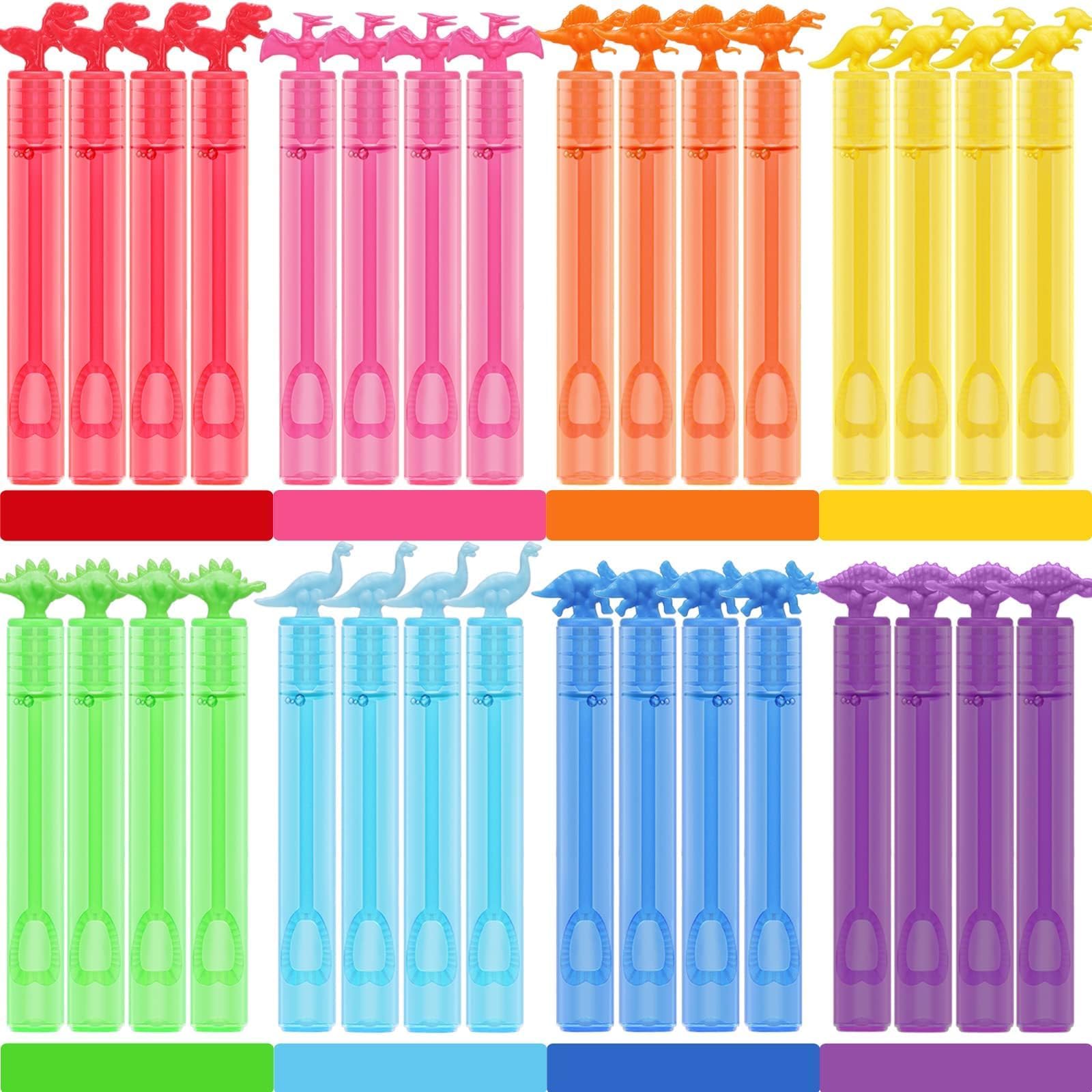 Value with gift box - Including 32 PCS with 8 Style mini dinosaurs bubbles with specially design, Fun toy for summer and bath time activities. Children can easily blow out colored bubbles in the sun.