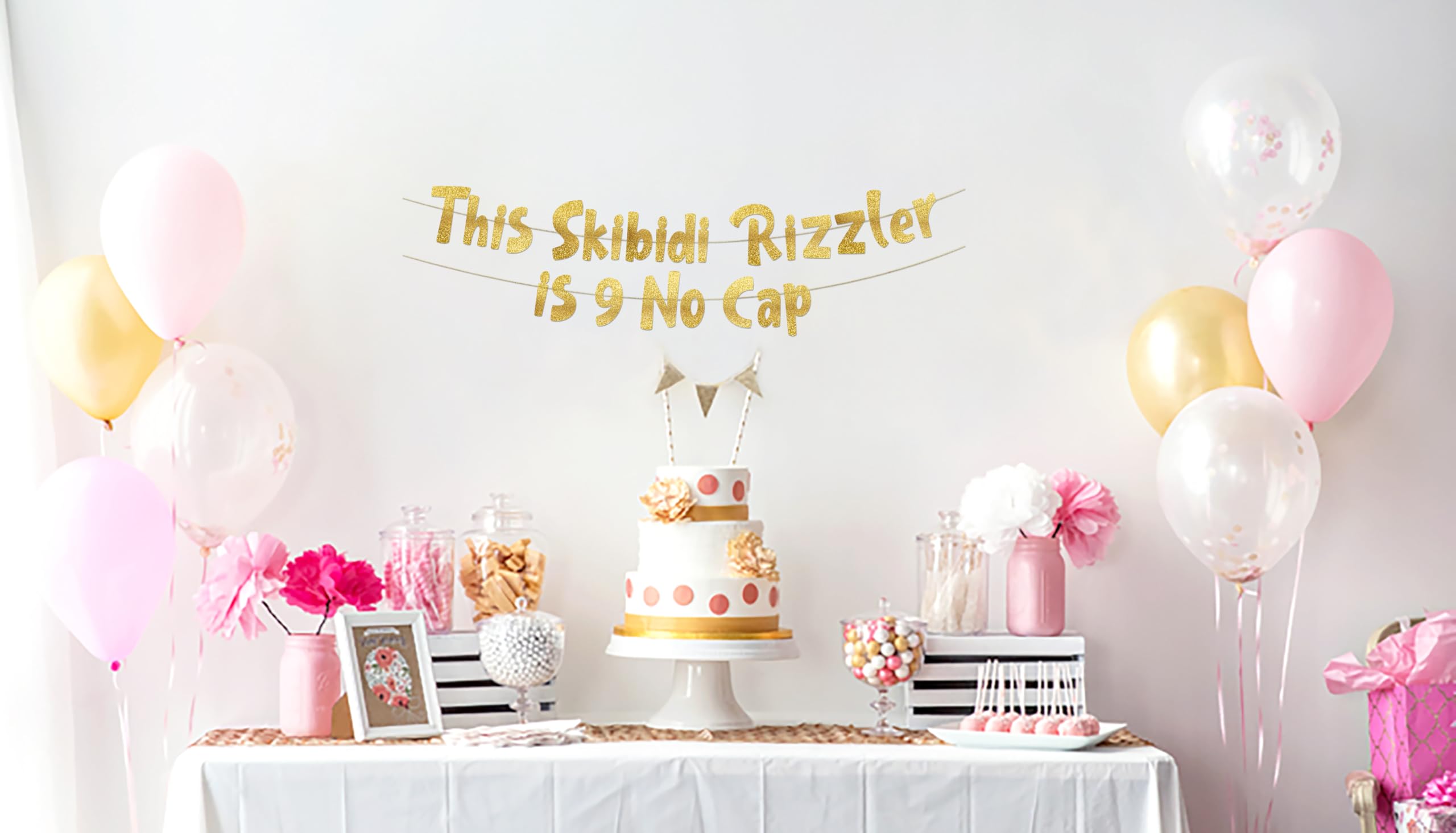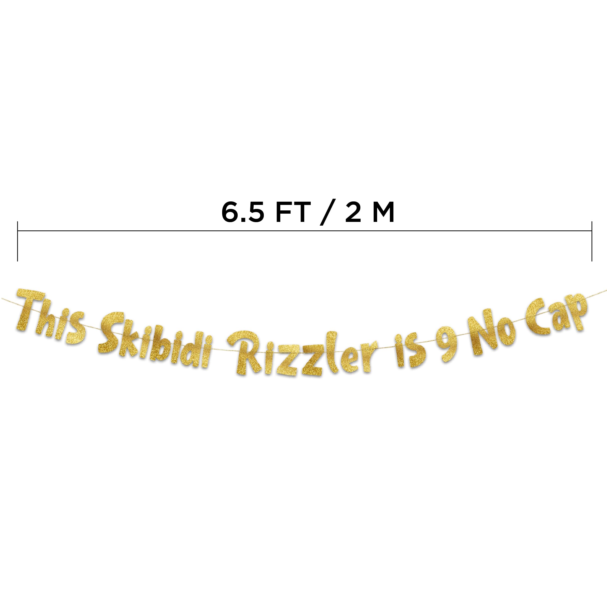 Congrats on the big 9! That calls for a celebration! And that is exactly what will happen when you rock our 9th Birthday "This Skibidi Rizzler is 9 No Cap” gold glitter banner.