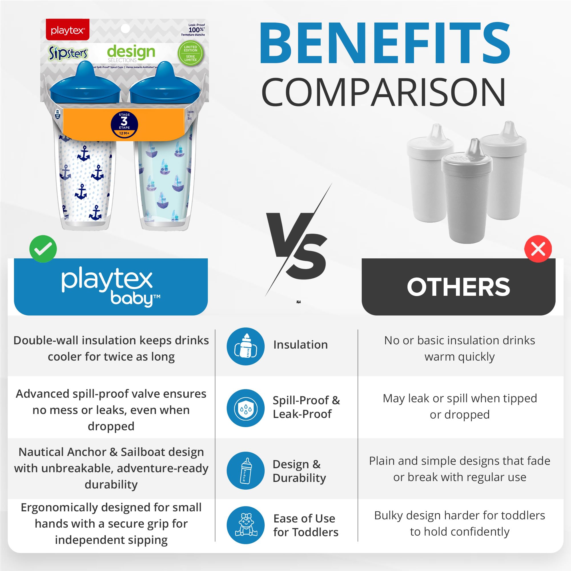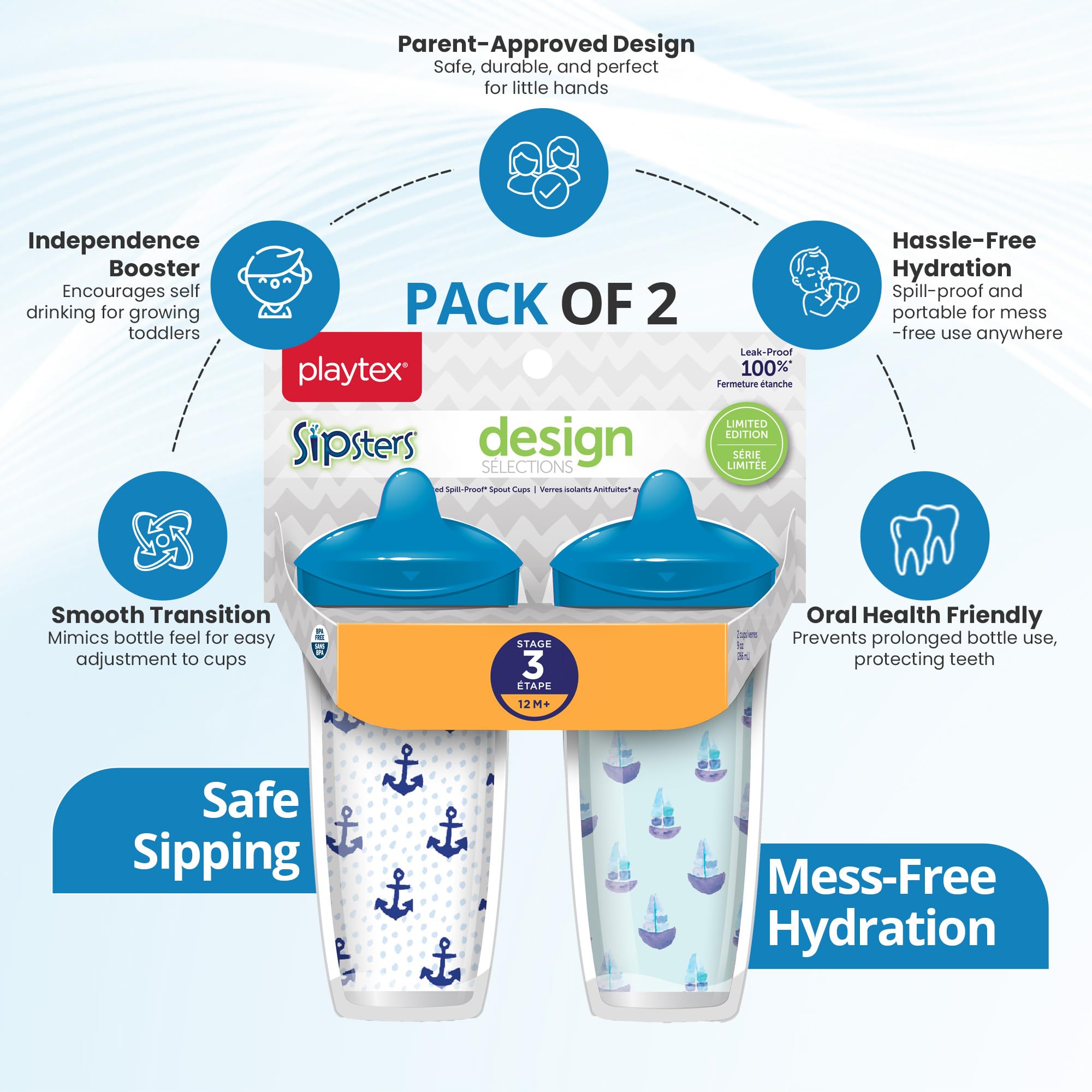 SPILL-PROOF: Playtex Baby Sipsters are unbreakable when dropped and prevent messes with their spill-proof valves