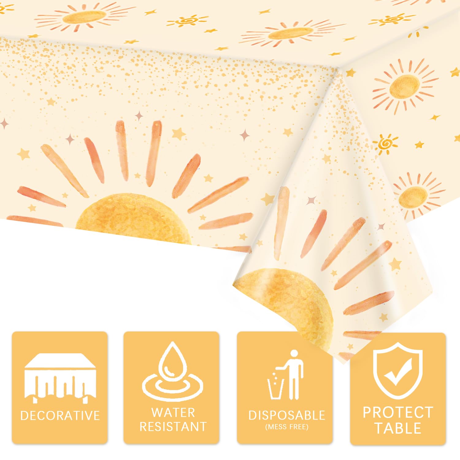 【Wide Range of Uses】:These baby shower tablecloths are versatile and can be used for sun party decorations, first trip around the sun birthday celebrations, as well as paired with your sunshine baby shower decorations, sunshine party decorations, hippie birthday party banners, and sunshine baby showers.