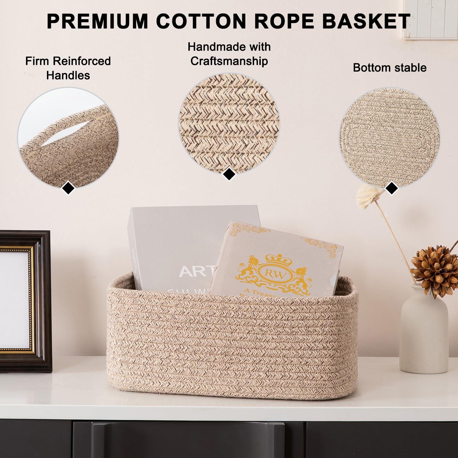 [Cute & Small Decorative Storage Baskets]: These 4 Pack woven baskets measuring 13.78''Lx9.84''Wx5.51'', the fantastic woven rope baskets with mini size, which can work as shelf baskets for organizing, cute and practical for home decor, making your home more cozy and attractive