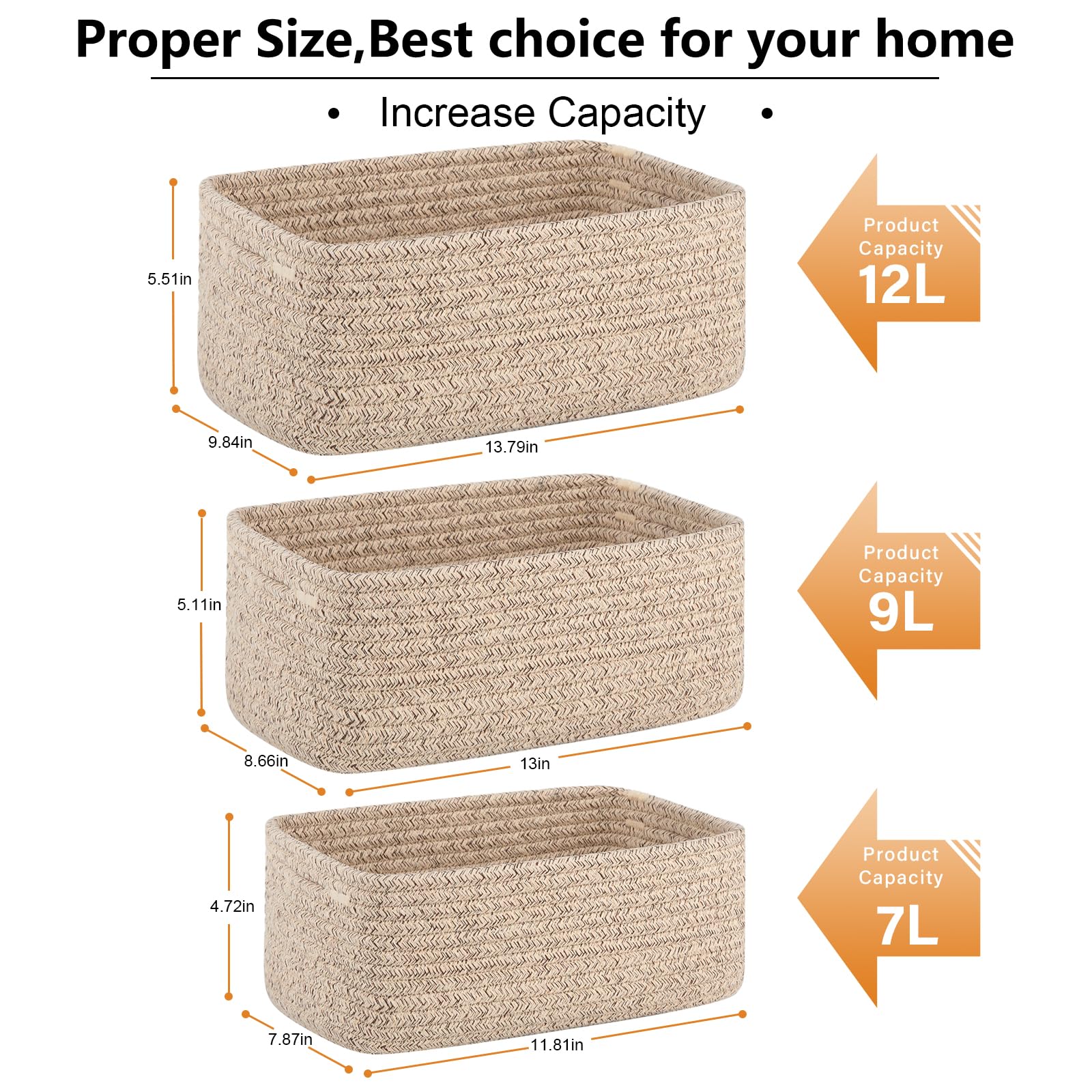 [Long-lasting and High Quality]: Skilled workers and strict quality control procedures give us confidence in the cotton rope storage bins, make sure the woven baskets serve you for longer time