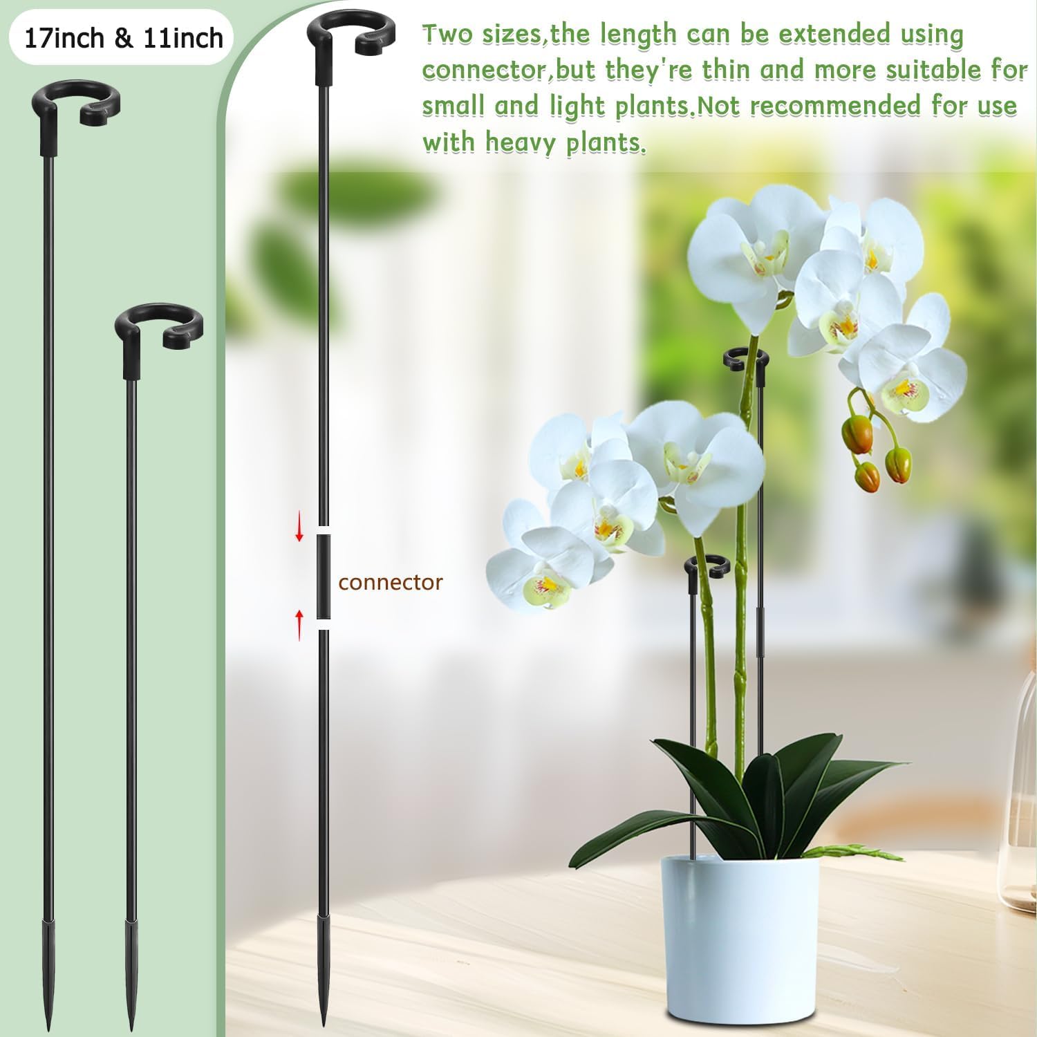 💐【ADJUSTABLE LENGTH】- Contain 8 pack 17inch and 8 pack 11inch support rods,each diameter measures about 0.12 inch which perfectly match plants of different heights,their length can be extended by connectors.The diameter of the ring is 0.6 inches.If your plant stem is too thick, you need to slightly open the slot with your hand to allow the plant to pass through smoothly.