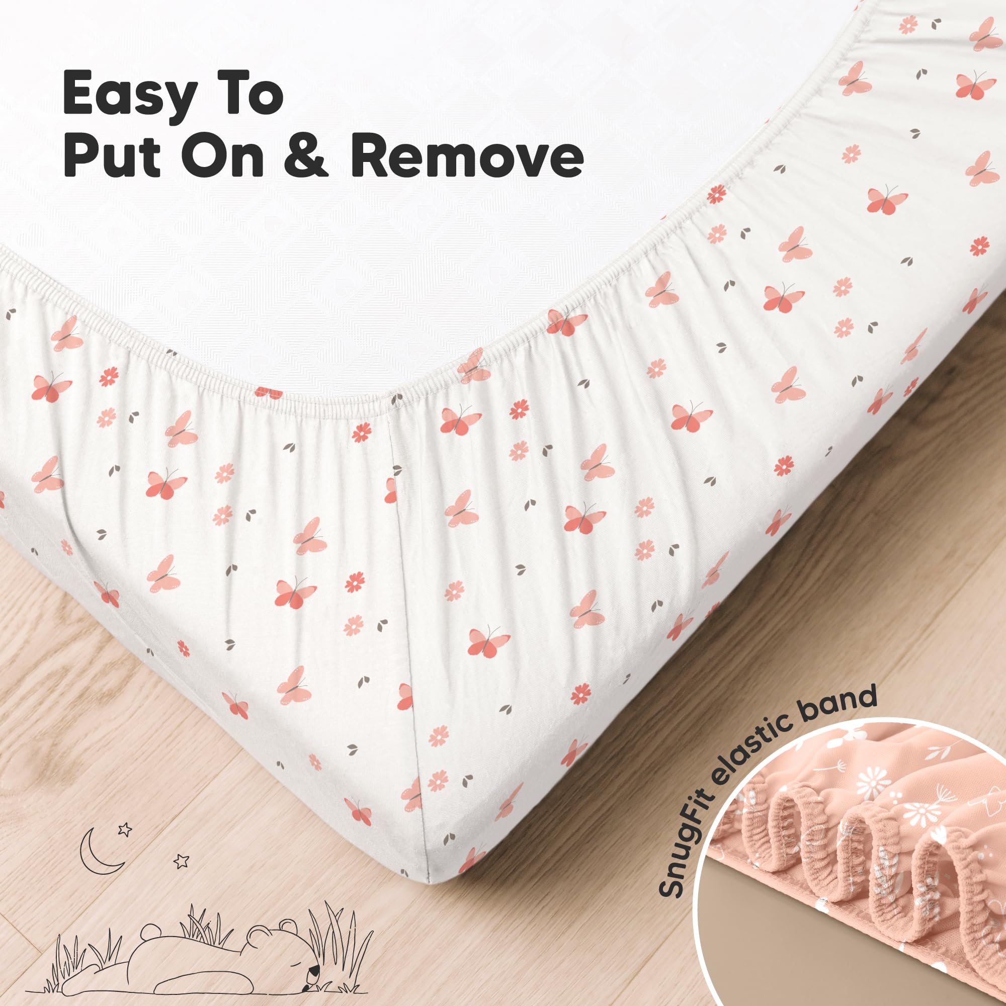 Easy To Put On - Our baby sheets for crib use SnugFit Tech, a smart fabric knit that stretches effortlessly for quick fitting and removal of the toddler bed sheets. No more struggling with rigid fabric!