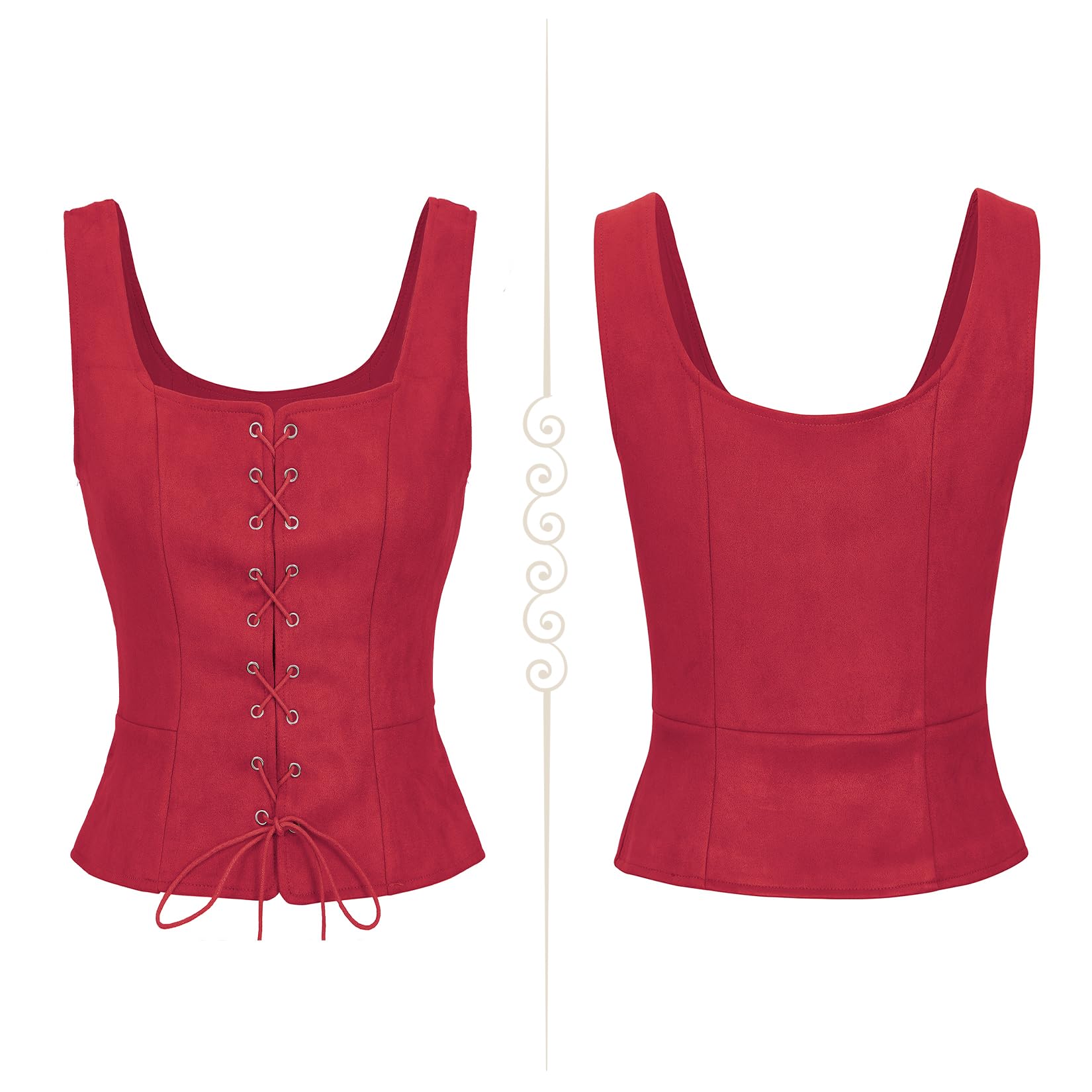 【Retro Pirate Vest】Pirate corset women have vintage designs of sleeveless, square neck, U-Back, Lace-up front, luxury faux suede fabric. Pirate costume women has U-back design helps this vest to sit perfectly on your figure, plus size corset top ensuring a flattering fit.