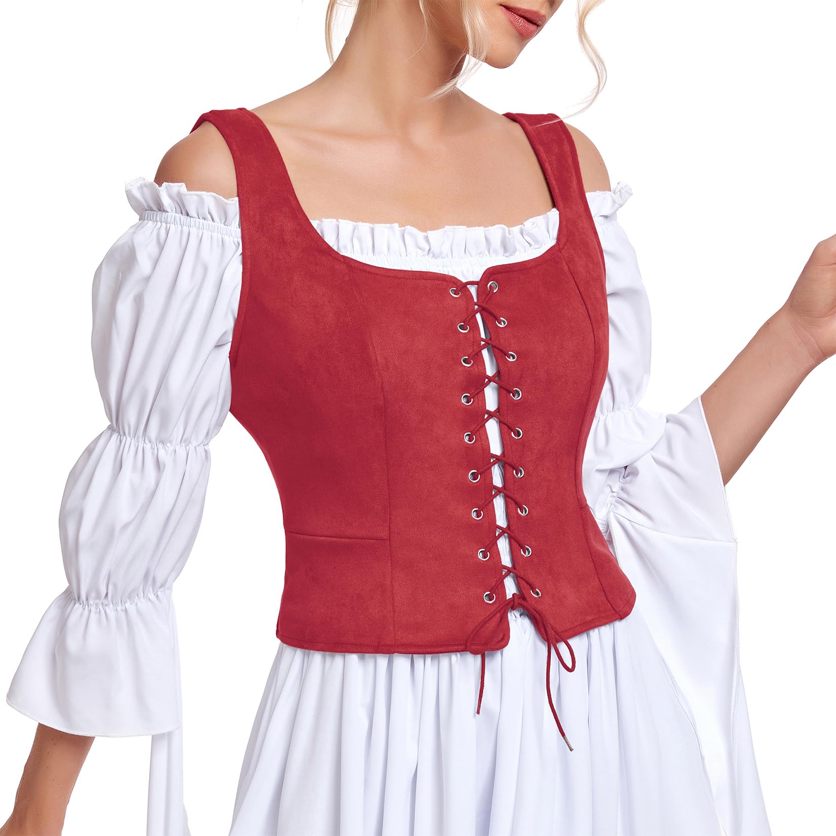 【Match Tips】Medieval corset can be matched with tunic, shirt, dress, skirt, boot, high-heeled shoes. Super cute and versatile, can be wore with any look.