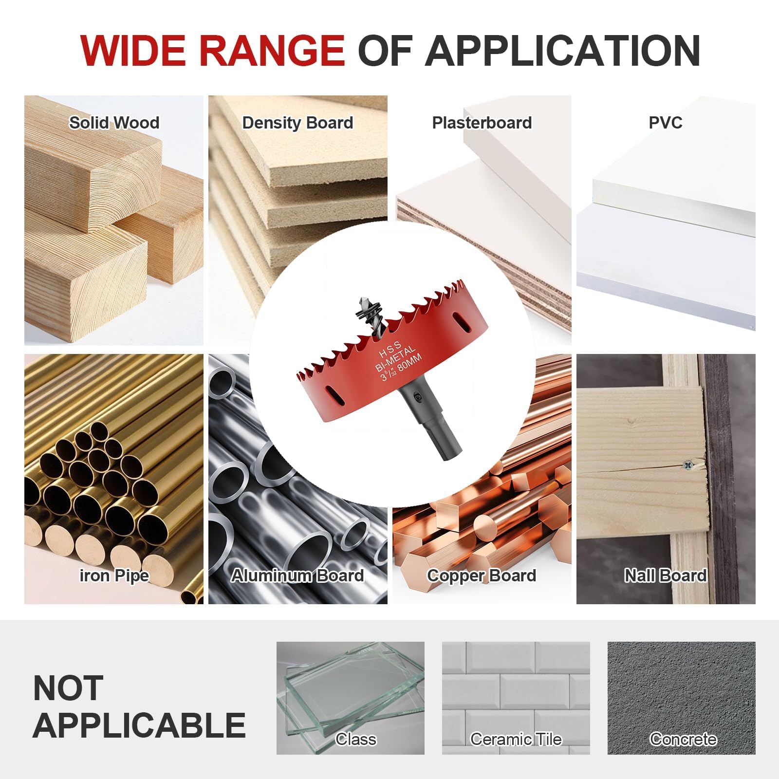 Wide Range of Applications: This tool excels in drilling various materials, such as wood, plywood, plastic, gypsum board, and various thin metal sheets; It meets your needs for drilling in multiple materials, making it an ideal choice for your cutting and drilling tasks