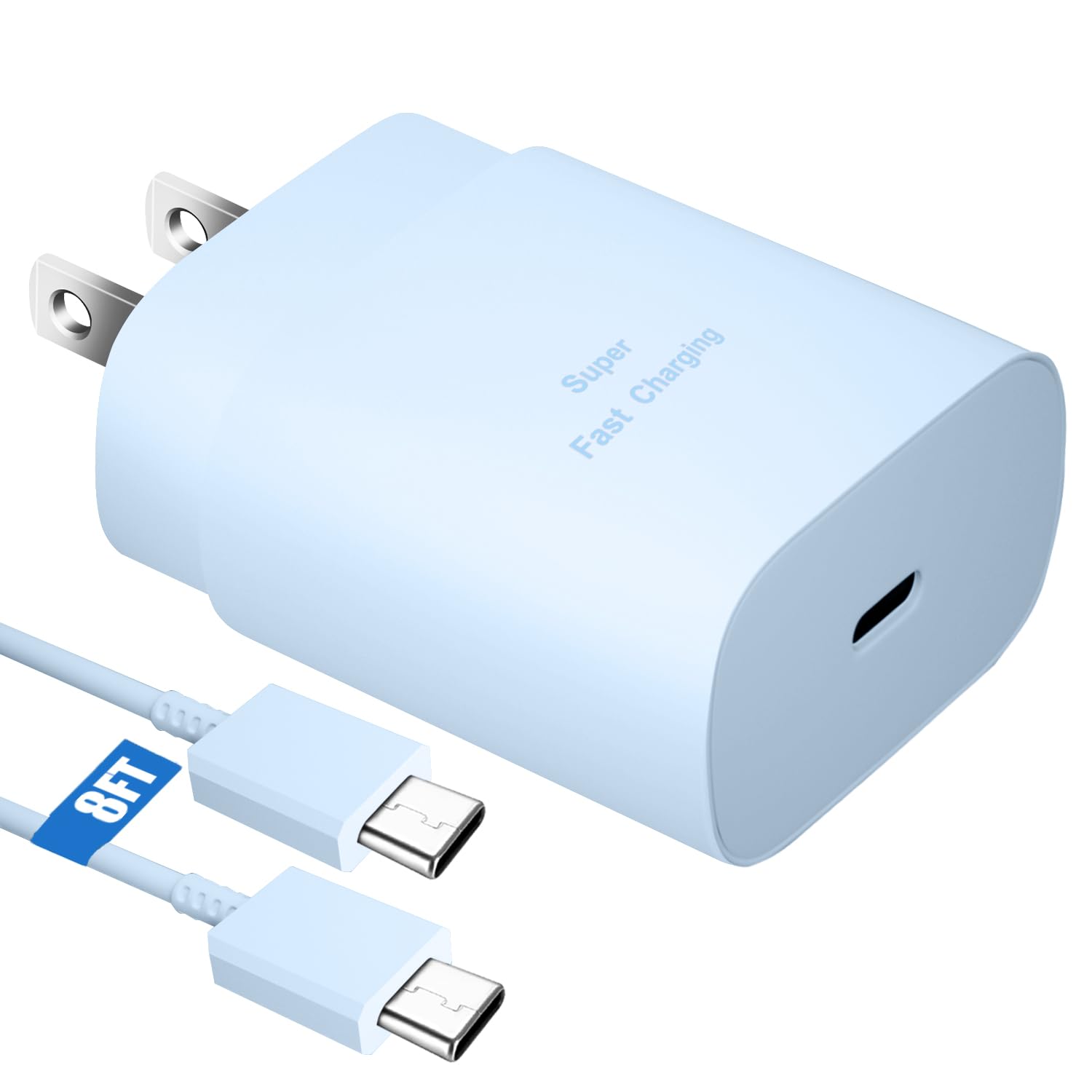 【8 Feet C Cable Cable Fast Charging】25W Super fast charger type c kit includes 1 PACK 8 feet/2.44m super long type c to type c cables,allows you to charge your Samsung phones and other usb-c devices from extra long distance, and freely enjoy playing games while super fast charging.Output 3A high power and supports data transfer speed up to 480Mbps.