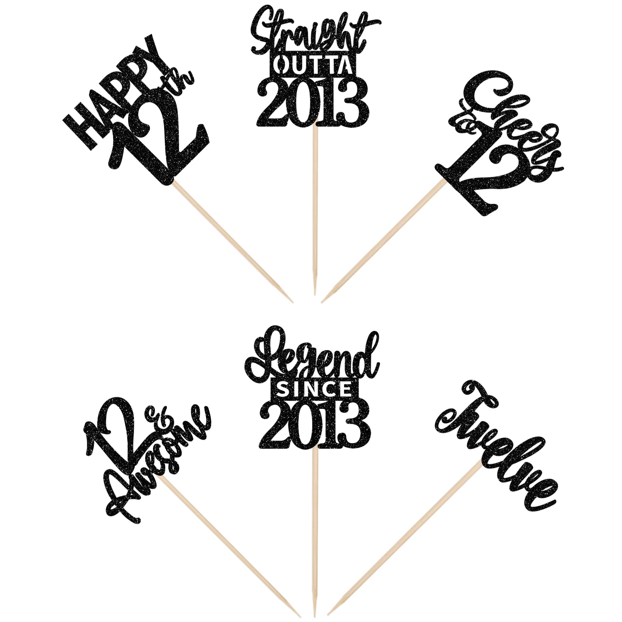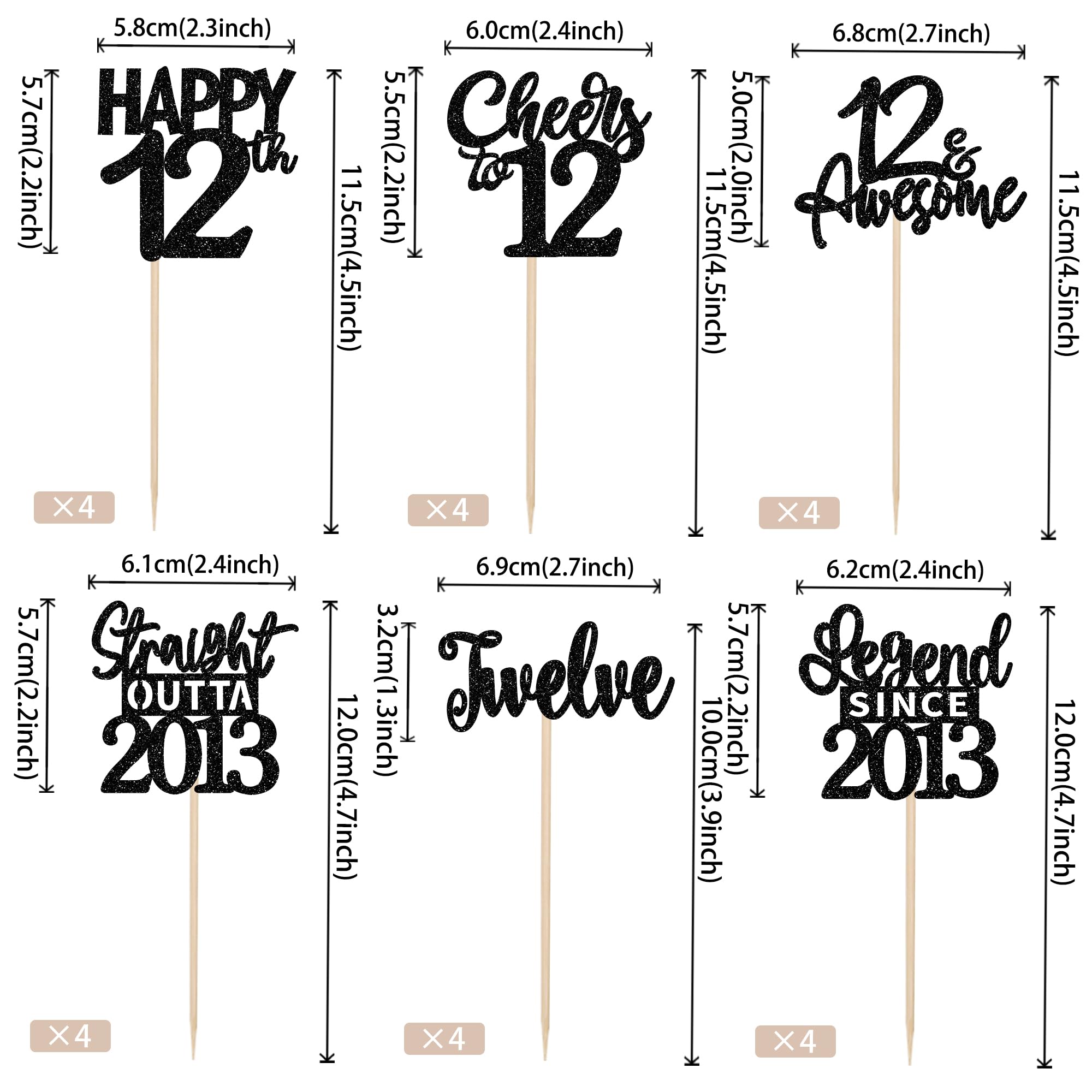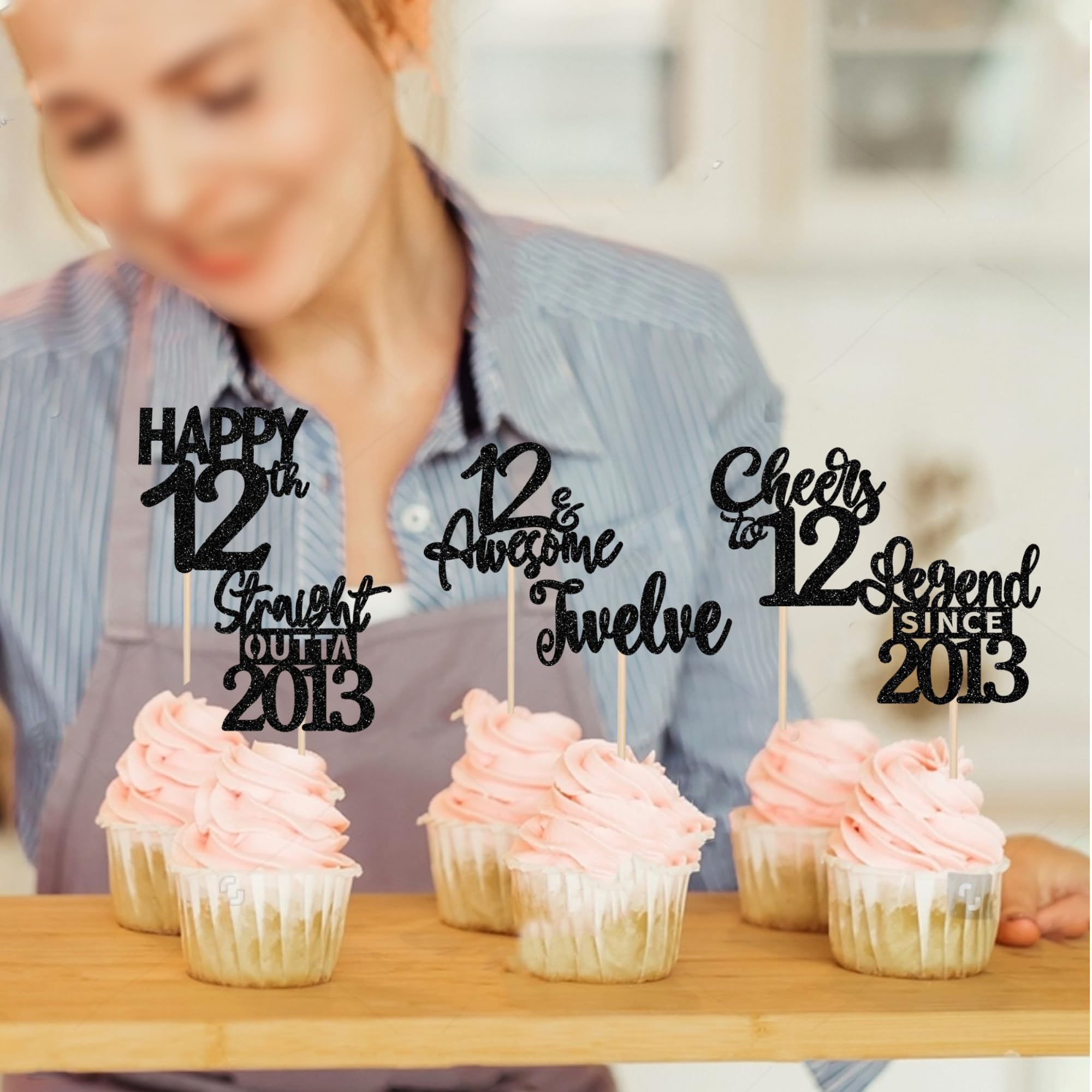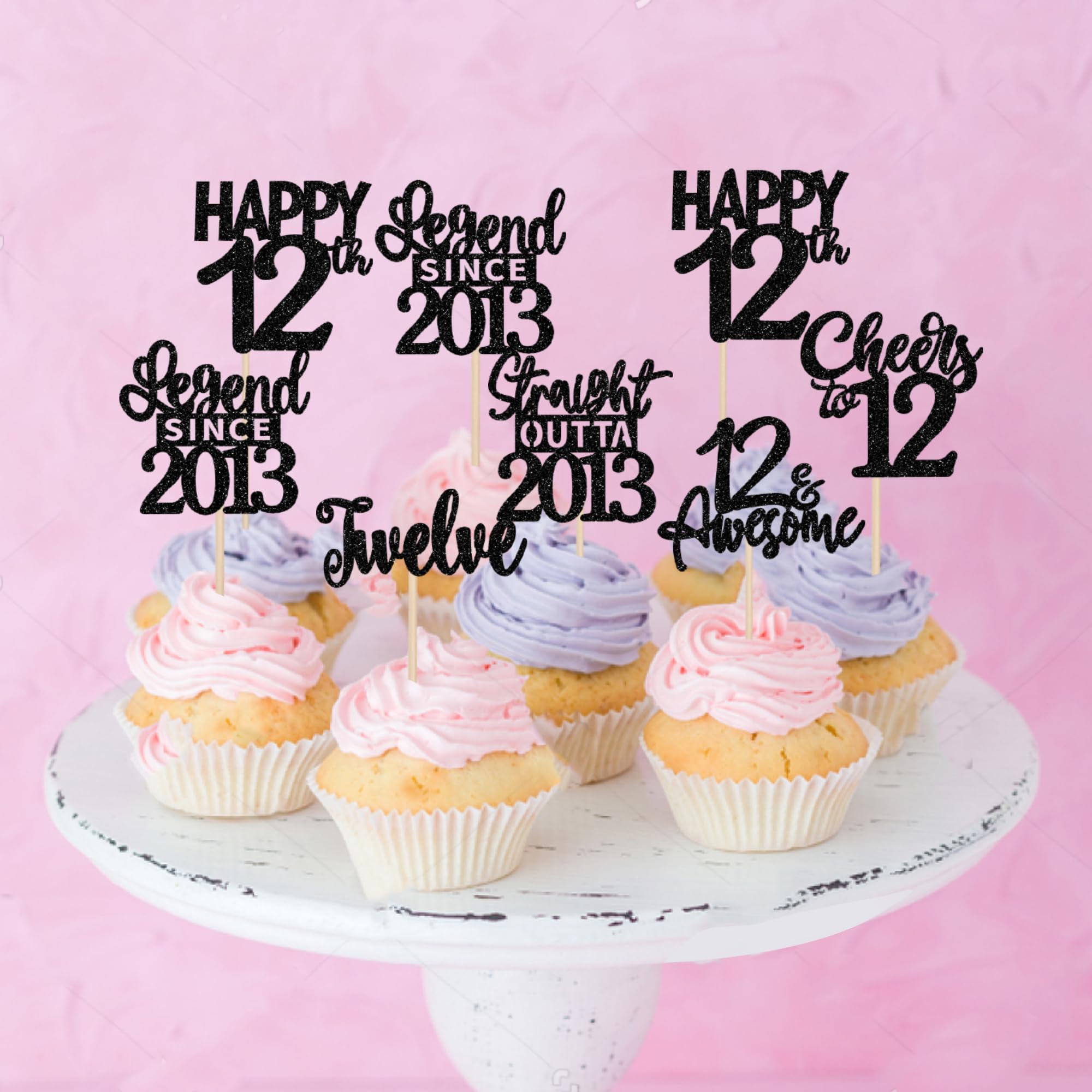 24PCS 12th Birthday Cupcake Toppers Twelve Happy 12th Official Teenager Straight Outta 2013 Cupcake Picks Cheers to 12 Lengend Since 2013 Cake Decorations for 12th Birthday Party Cake Decorations Supplies Perfect for legend since 2013 theme party, 12th anniversary theme party,cheers to 12 years theme party, 12 awesome theme party cupcake decorations supplies. Pack of 24 pcs,4 pcs of each design. The size is 2.3*4.5/ 2.4*4.5/ 2.7*4.5/ 2.4*4.7/ 2.7*3.9/ 2.4*4.7 inch ( with stick ) Made of high quality paper card stock,thick and sturdy. These straight outta 2013 cupcake toppers are one side glitter, another side is white, and they are intended for decoration only, please do not put them in oven or microwave. If the item you received has any defects, please contact us immediately. We will deal with it within 24 hours.