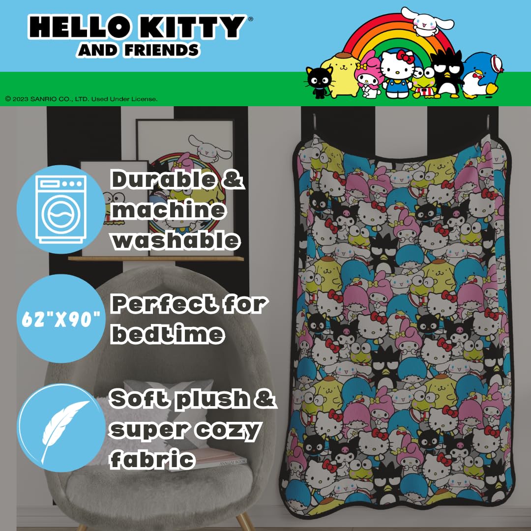 HELLO KITTY & FRIENDS DESIGN: Behold the Hello Kitty & Friends Rotary Blanket, adorned with beloved Sanrio characters. This blanket features a charming design showcasing all your favorites, making it a must-have for fans of all ages.
