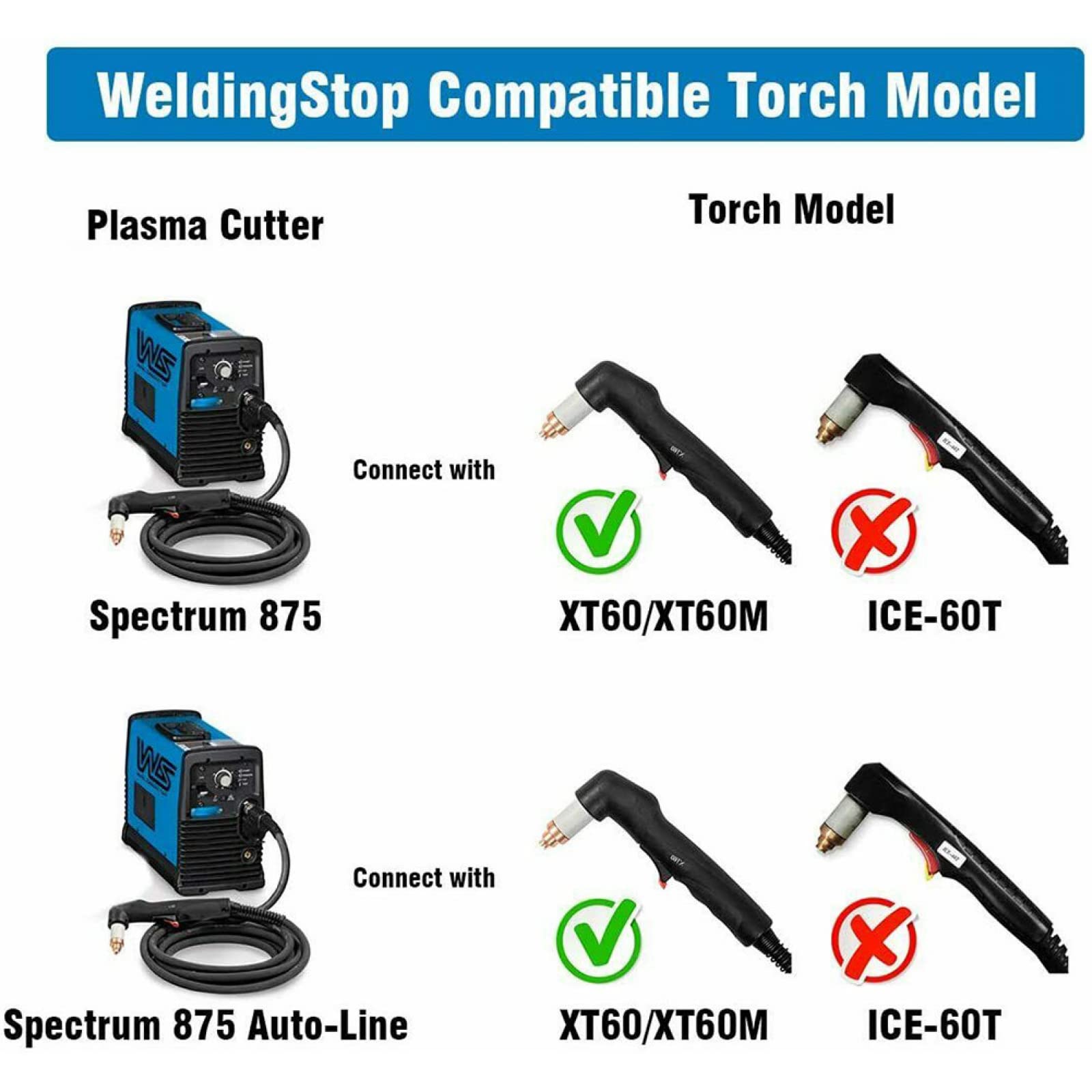 Electrodes and weld heads are WS OEM aftermarket parts for use with torches A. Plasma Spectrum 875 cutters for use with XT60 or XT60M torches B. Plasma Spectrum 875 automatic wire cutters for use with XT60/XT60M torches; not for plasma cutters for use with ICE-60T/TM torches
