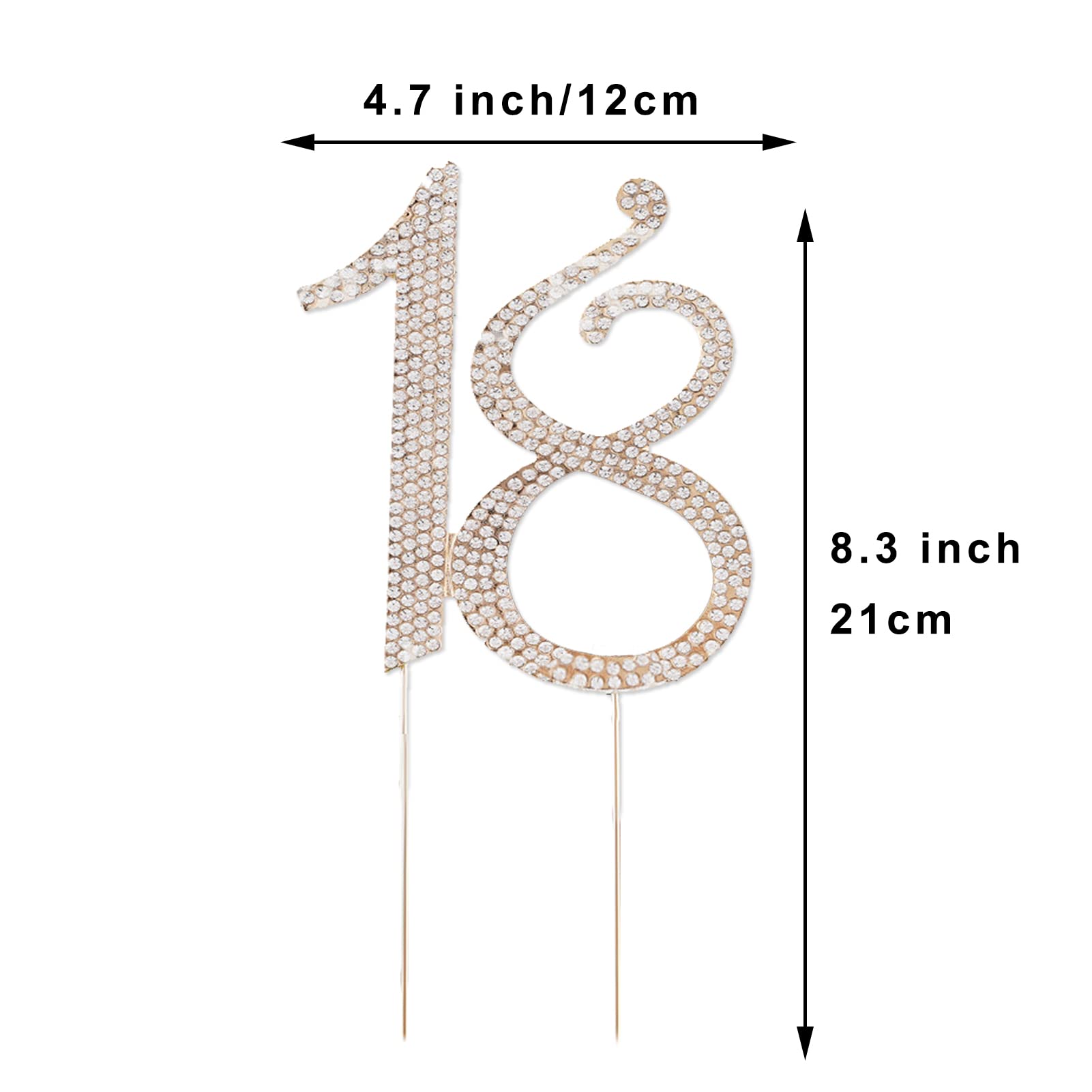PREMIUM QUALITY: Sturdy metal alloy of 18 diamond cake topper, bling rhinestone birthday number also attached for greater use, make sure that you get the best quality cake topper