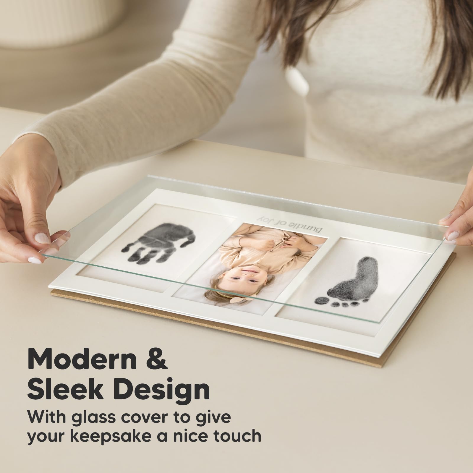 No Mess, No Residue - Designed to create your baby's hands and footprints without leaving ink residue on your baby. Our clean touch ink pads use a “zero ink contact” imprinting method to allow beautiful stamping on our baby keepsake frame.