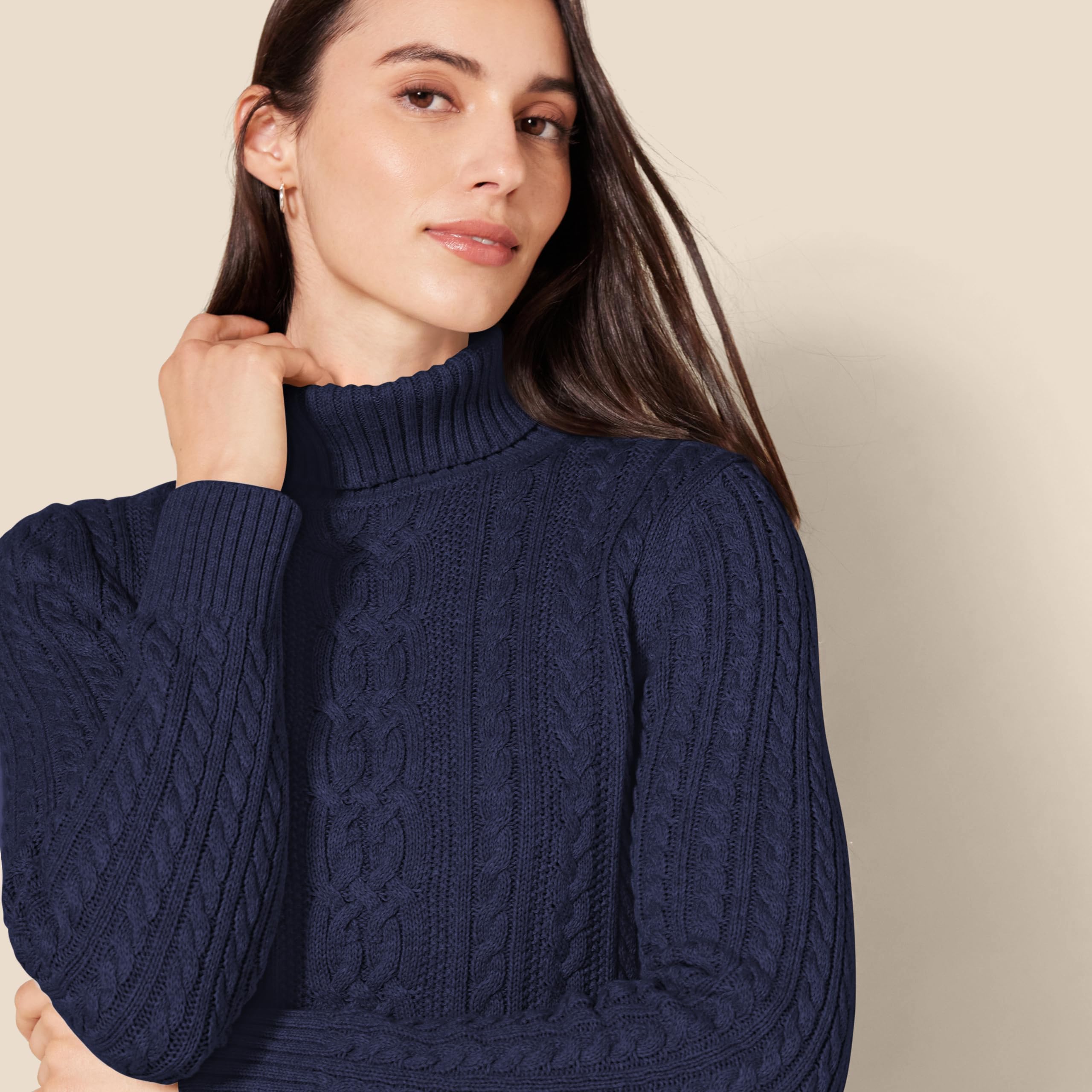 CABLE TURTLENECK SWEATER: A modern, classic cozy sweater perfect for both a refined and casual look.