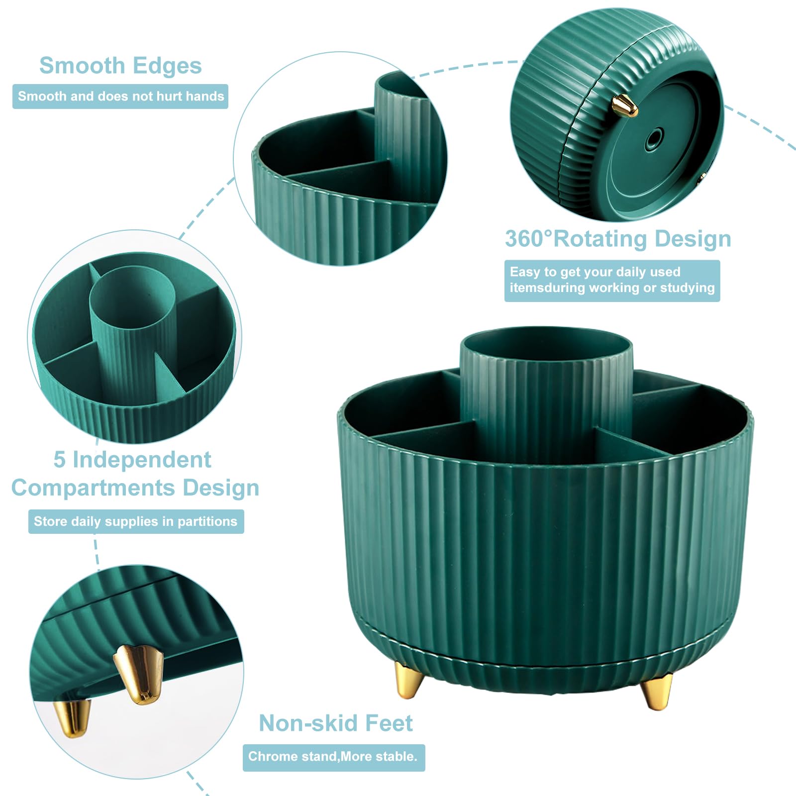 【 Rugged And Durable 】This pen holder organizer is made of eco-friendly and non-toxic ABS material that won't cause any harm. The gold-plated stand with 360° rotating base is very stable and does not tilt for long term use. The extremely smooth surface and rounded edges won't hurt your stuff or yourself.