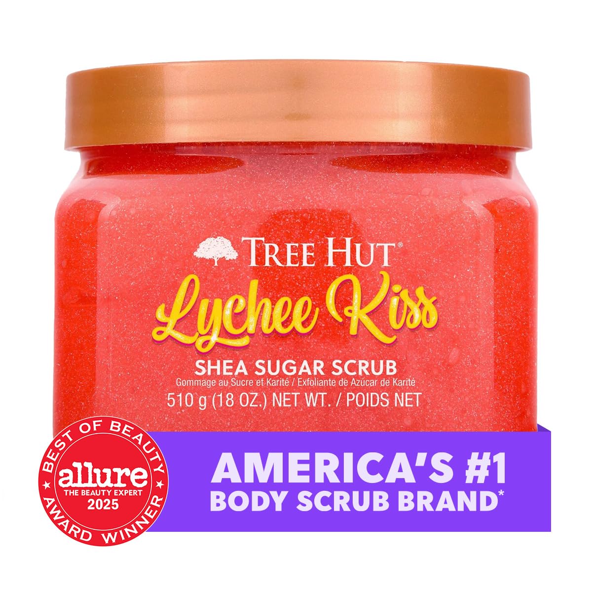 Reveal youthful, vibrant skin with the exotic, lush scent of Lychee Kiss! Made with Sugar, Shea Butter, Lychee Extract and Mandarin Extract to leave skin feeling nourished and smelling delicious. Tree Hut Sugar Scrubs remove dull, dead skin with gentle exfoliation and are paraben-free, vegan, sulfate-free, contain no formaldehyde donors, and have a no-slip formula with a long-lasting fragrance.