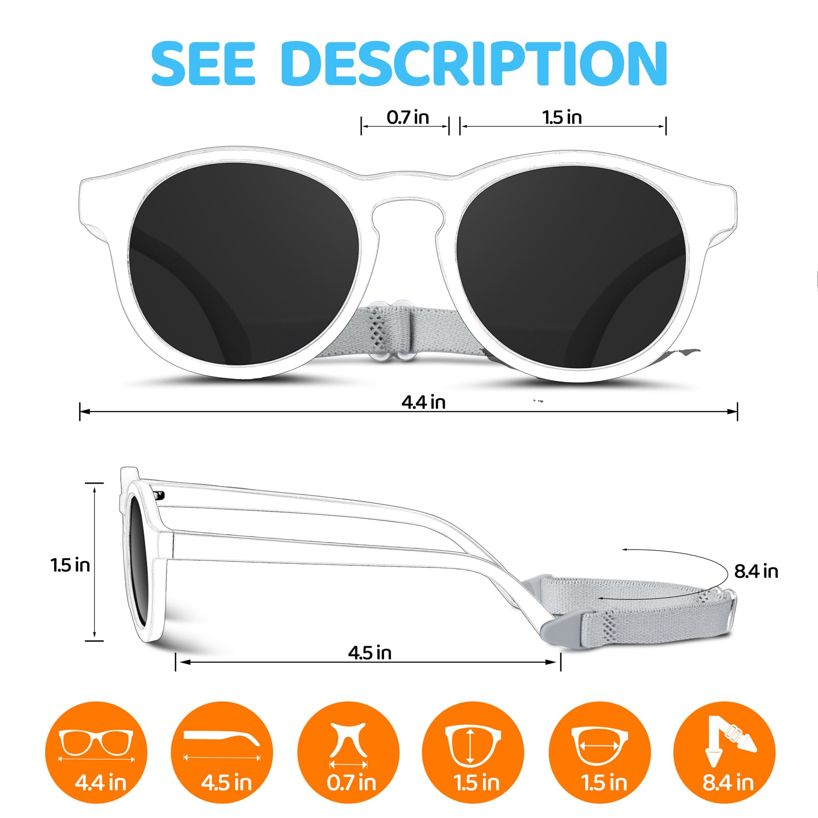 【Specifications】The glasses are designed with optimized dimensions to ensure that the proportions of the lenses and frames are suitable for a baby's facial features.