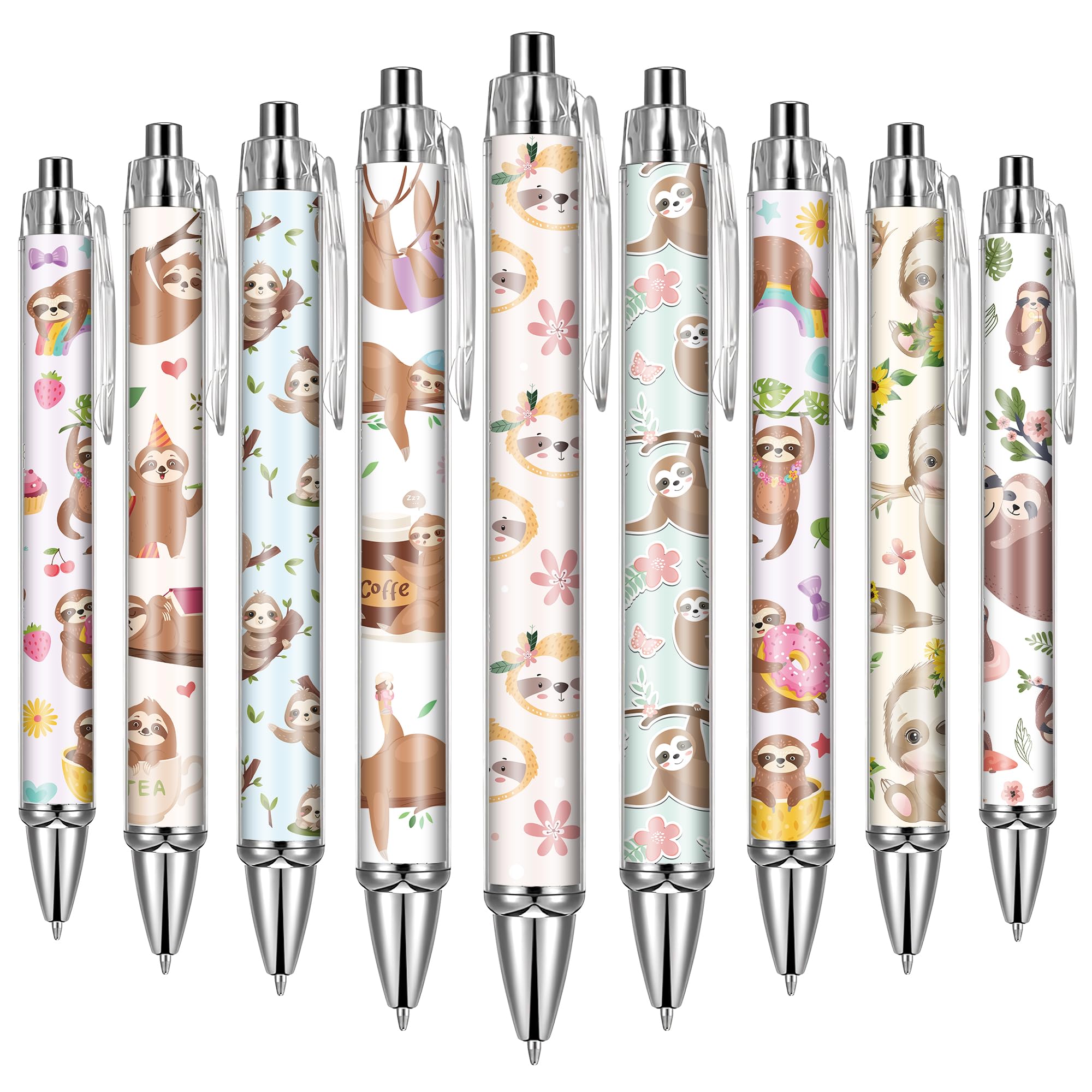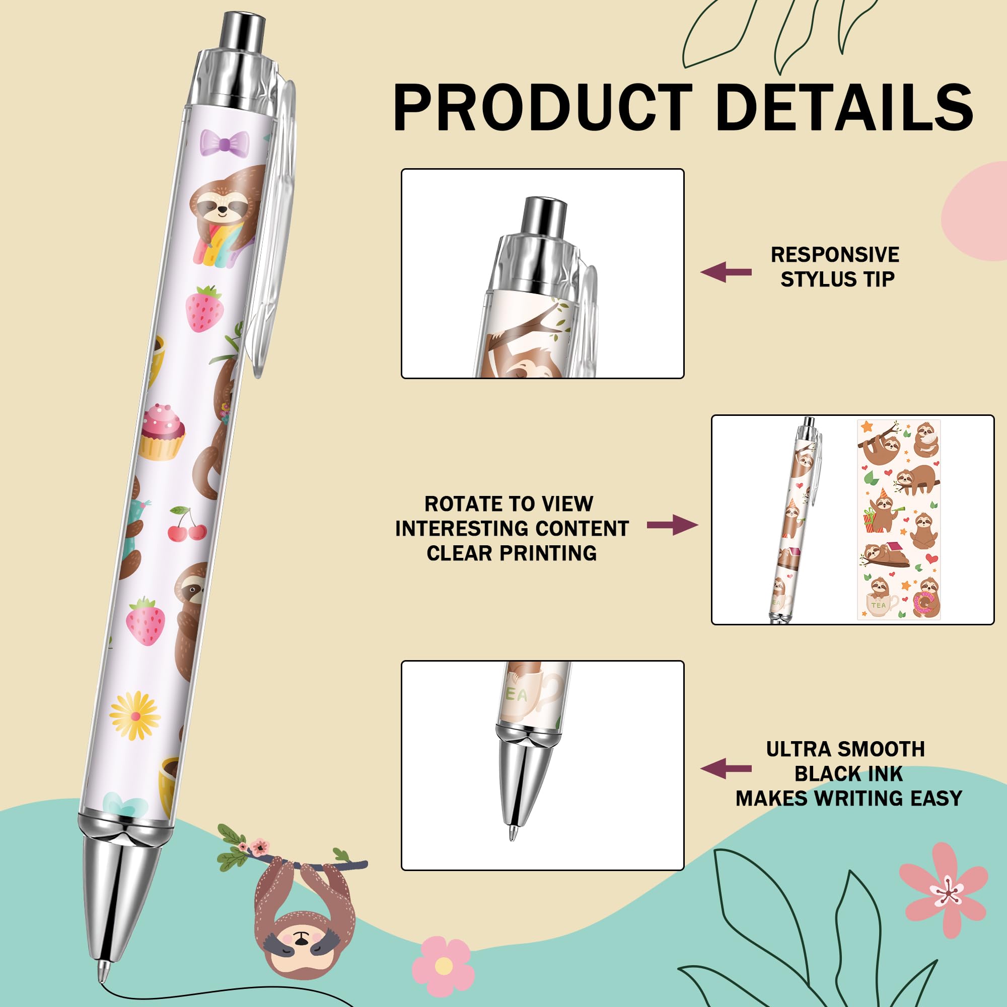 [Personalized Design]: The ballpoint pen comes with 8 pattern types suitable for sloth themes, making it very attractive to pen collectors. The addition of elements such as cartoon sloths, pink, green, yellow backgrounds, strawberries, donuts and branches make the pattern more attractive and perfectly fits the cute sloth-themed pattern.