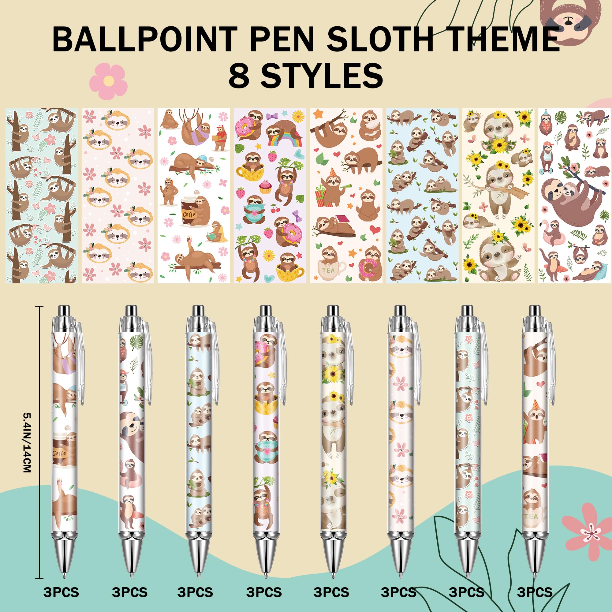 [Sloth Themed Ballpoint Pen Set]: The length of these pens is 5.4 inch. You will receive 24 pens with sloth themed patterns, 8 different patterns on the sloth theme, 3 of each pattern type. Ballpoint pens are available in sufficient quantities and styles to meet your daily writing and replacement needs, and can also be shared with others.