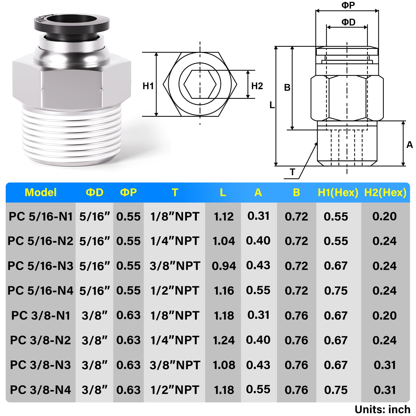 【Size】3/8" Tube OD x 1/2" NPT Thread,Notice - NPT Thread Size is a Nominal Pipe Size, and it Does Not represent the actual diameter