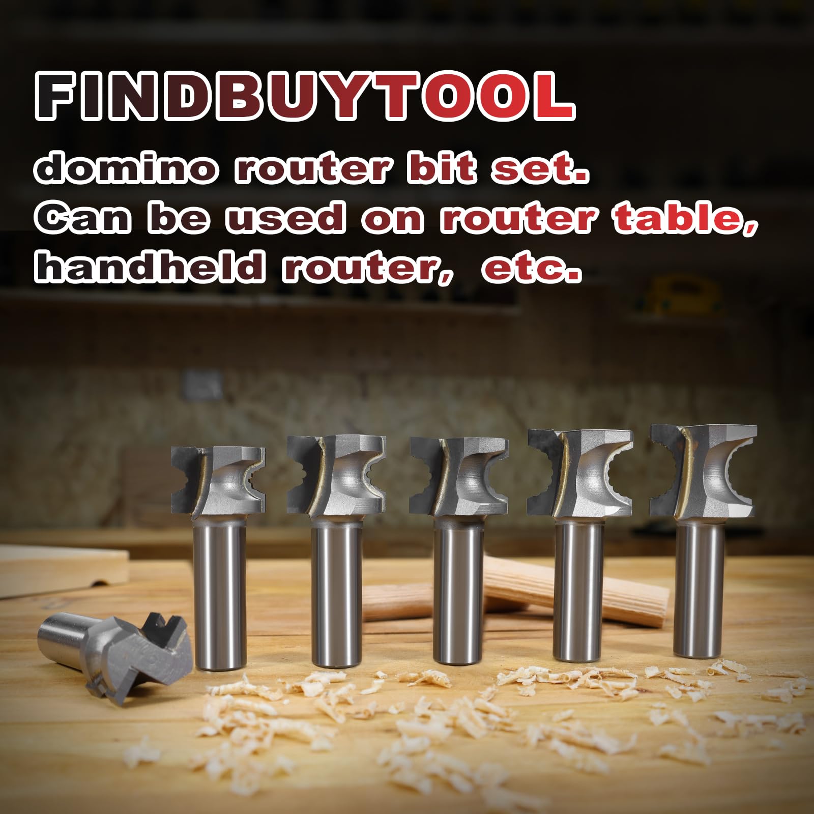 {Premium Tungsten Carbide Domino Router Bits for Festool DF-500 and DF-700} FindBuyTool’s domino cutter set includes 6 high-performance router bits (5mm, 6mm, 8mm, 10mm, 12mm, 14mm) designed for Festool Domino joiner DF-500 and DF-700. Made of industrial-grade tungsten carbide, these bits ensure long-lasting durability and precise cutting for woodworking joints, mortise and tenon, and floating tenons.