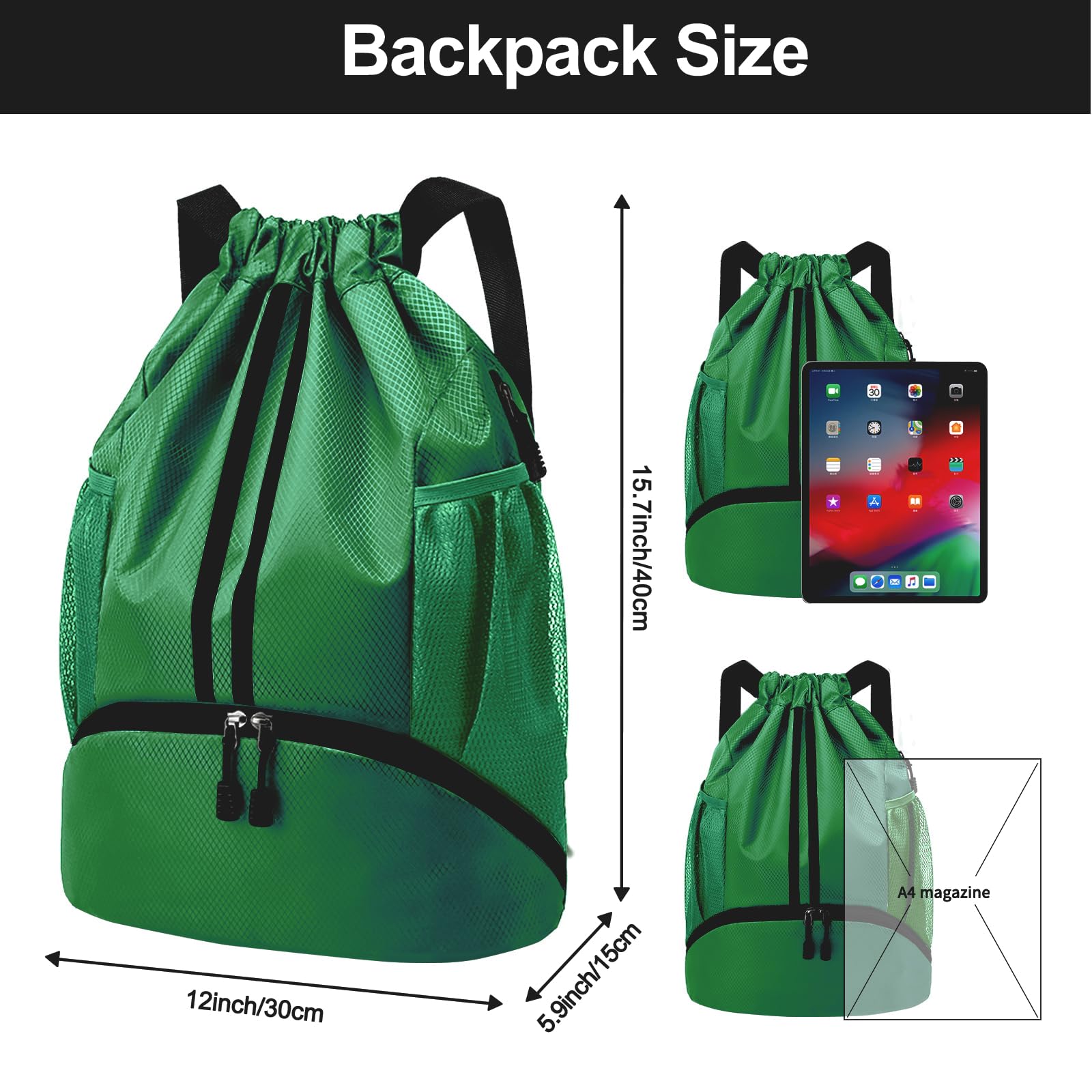 Description Featuring a multi-pocket design, this drawstring backpack has ample storage space for all your gym essentials, beach accessories, allowing you to keep your items separated and easily accessible.