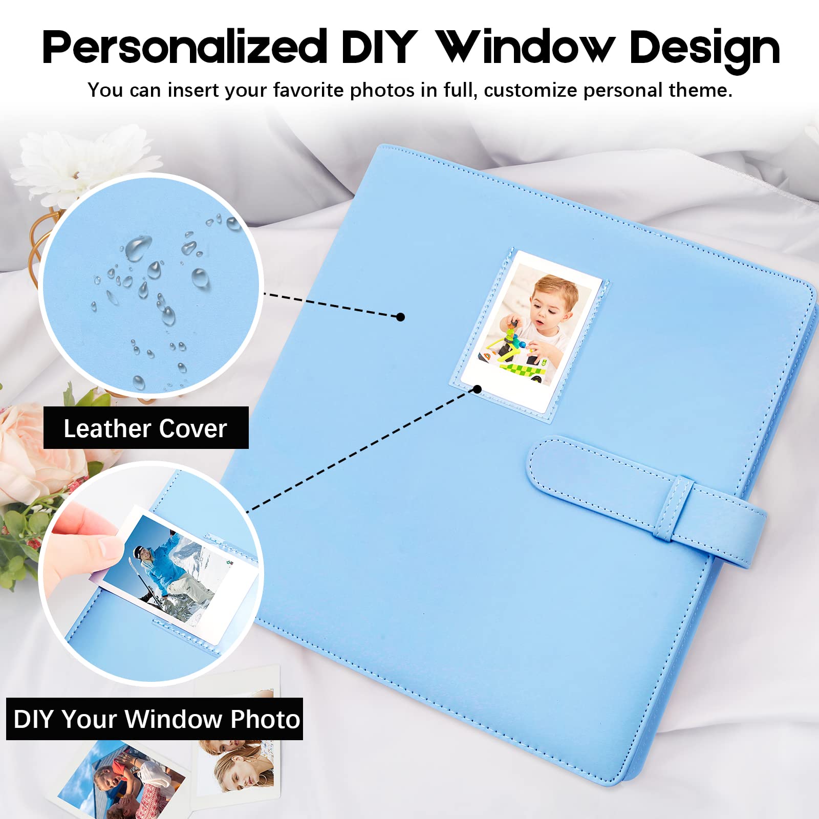 EXQUISITE COVER: Window Design The cover of this photo album has an open pocket , you can place your favorite photos in your own preferences, and make your picture album more personalized through windows.