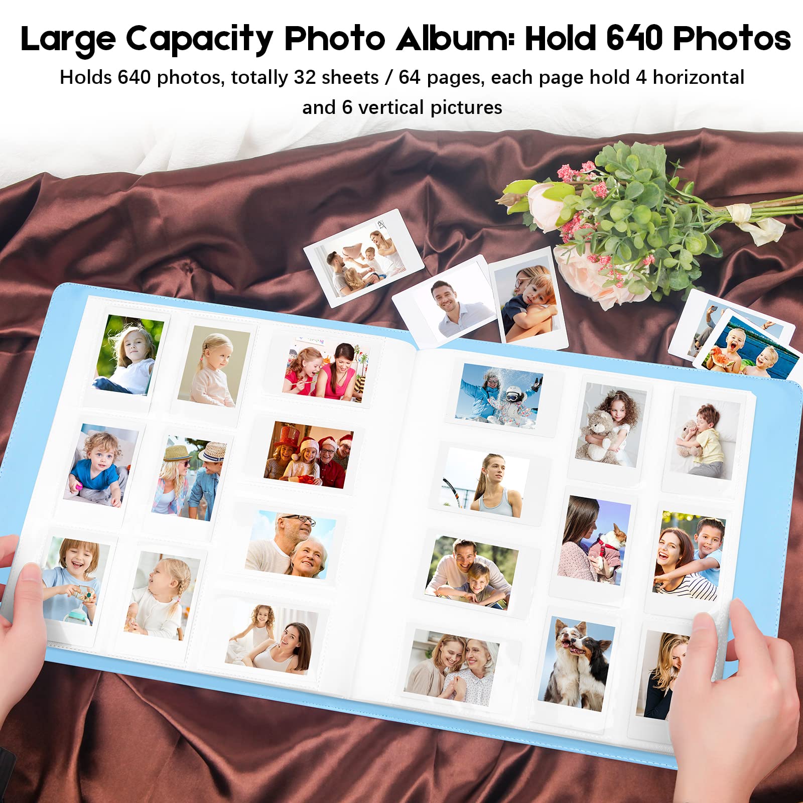 DISPLAY 640 PHOTOS: Hold 640 pictures in total, this album contains 64 individual pages with 10 photos per page, opens like a book for easy viewing. Best for weddings, engagements, graduations, baby photos or other arty obsessions.
