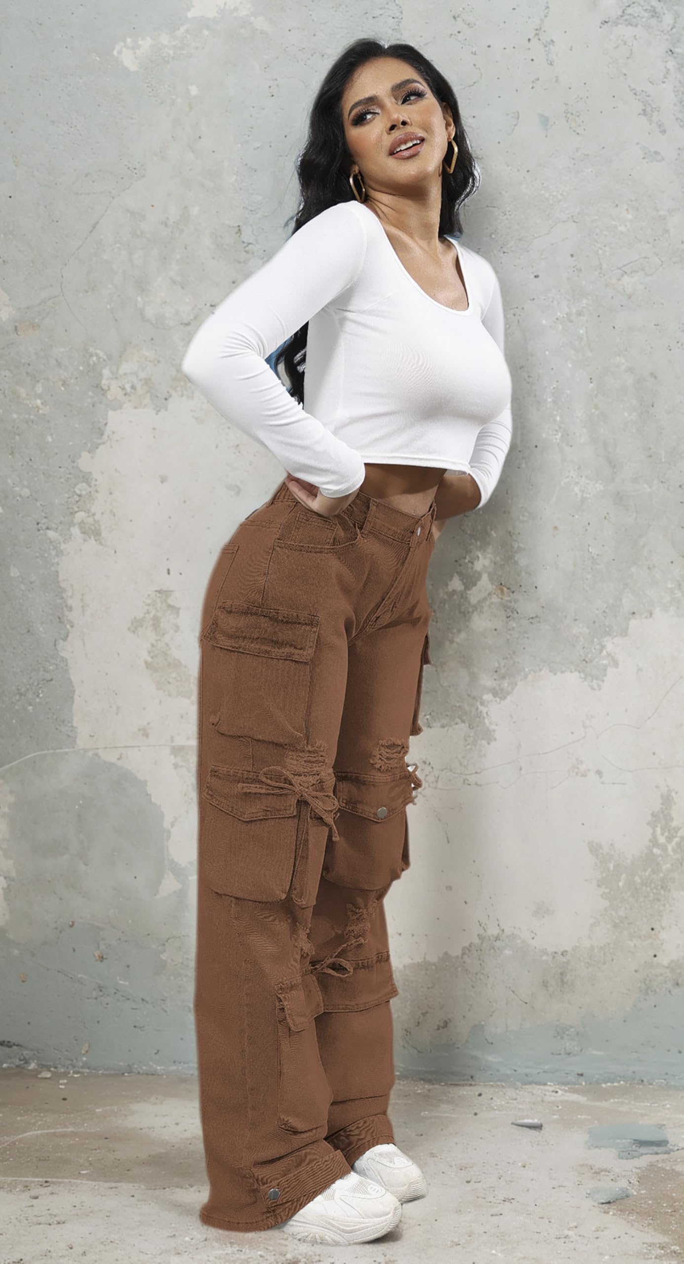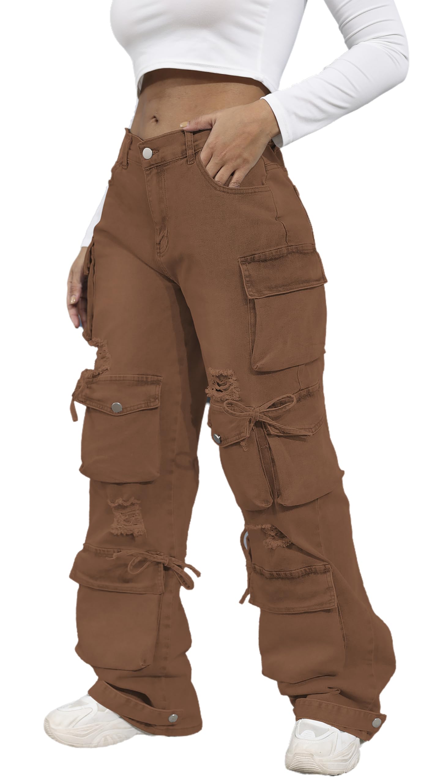 Note: Please refer to size chart in last picture of loose jeans for women before buying the fashion cargo jeans. Size:Small=US 4-6, Medium=US 8-10, Large=US 12-14, X-Large=US 16-18, XX-Large=US 20-22,3X-Large=US 24-26.