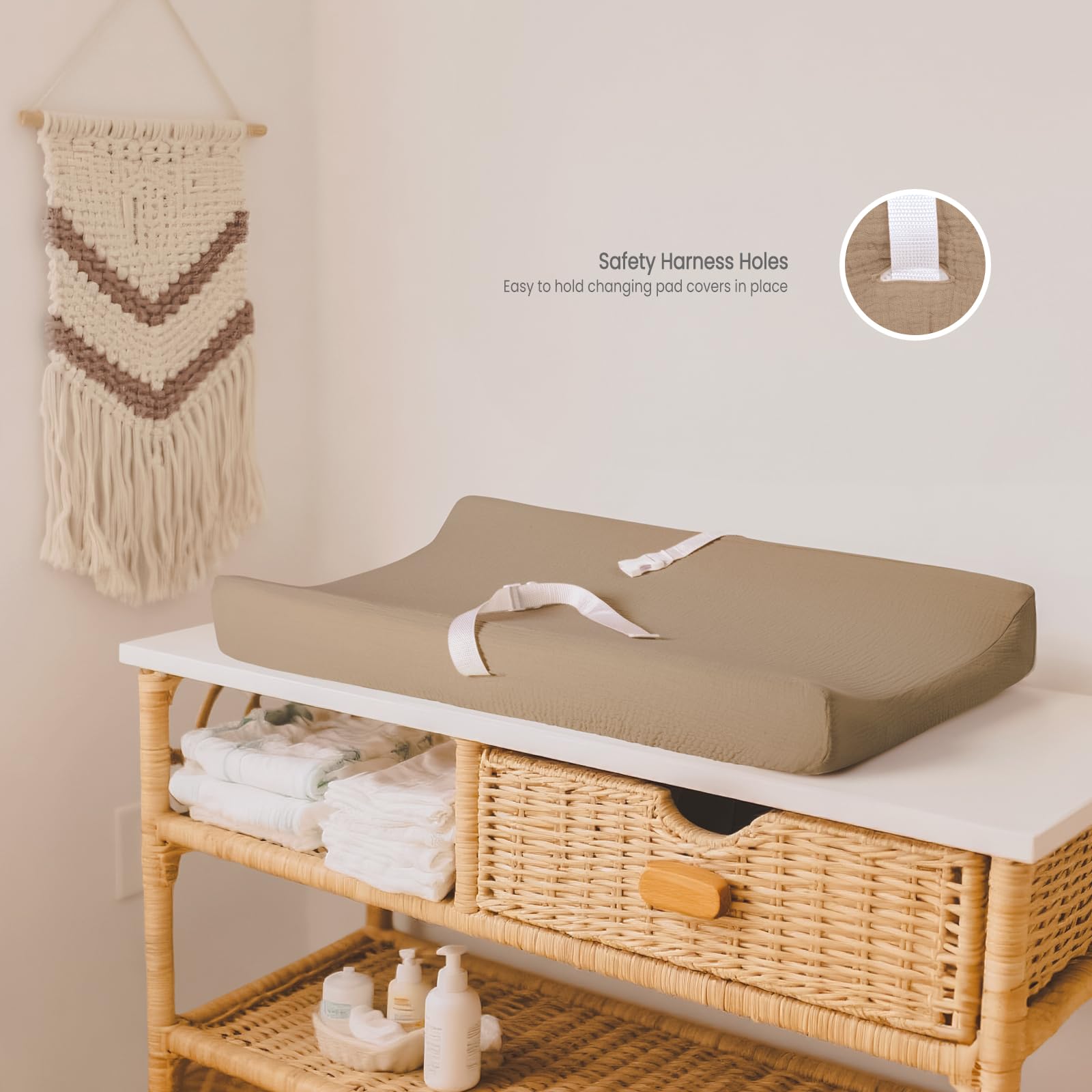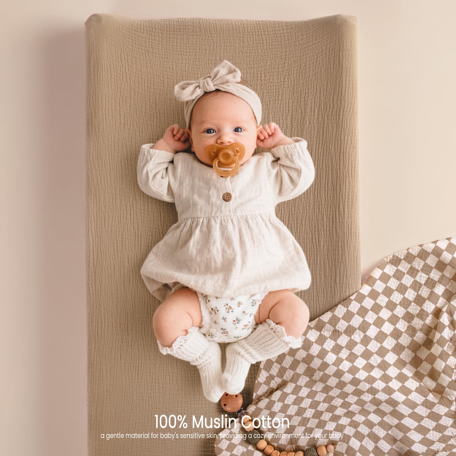 Soft & Breathable Muslin Cotton: Give your baby the comfort they deserve with our breathable muslin cotton changing pad cover. Its lightweight and ultra soft surface feels gentle against your baby’s sensitive skin, while the breathable weave promotes airflow to keep your little one cool and content during changes.