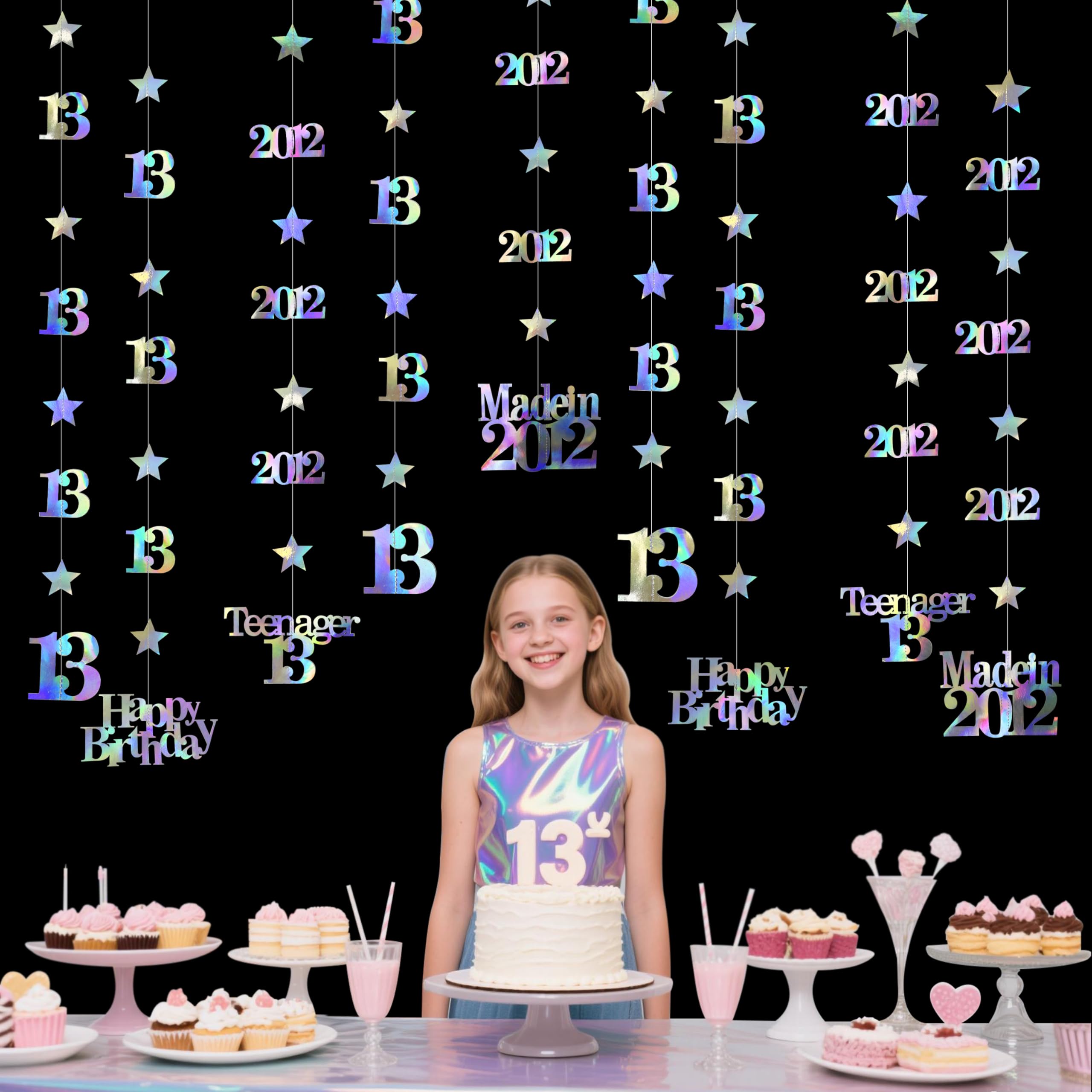 Our Iridescent Official Teenager Happy 13th Birthday Party Decorations Kit includes: ✓ 12 Pcs metallic star garland including number 13, Happy Birthday, Teenager 13 and Made in 2012 cutoutsWe have the perfect decoration party supplies set for the occasion: It’s perfect for: ► Official teenager birthday decorations ► Hello 13 birthday decorations ► 13th birthday decorations for girls ► 13th birthday decorations for boys ► Cheers to 13 years decorations ► Sweet 13 party decorations ► Omg ur a teenager party decorations ► Made in 2012 party decorations ► Vintage back in 2012 party decorations ► Bridal shower ► Engagement ► Anniversary ► Wedding Parties! Our vintage back in 2012 happy birthday party decorations is ready for its close up - we can't wait to see what memories you create! Have fun!
