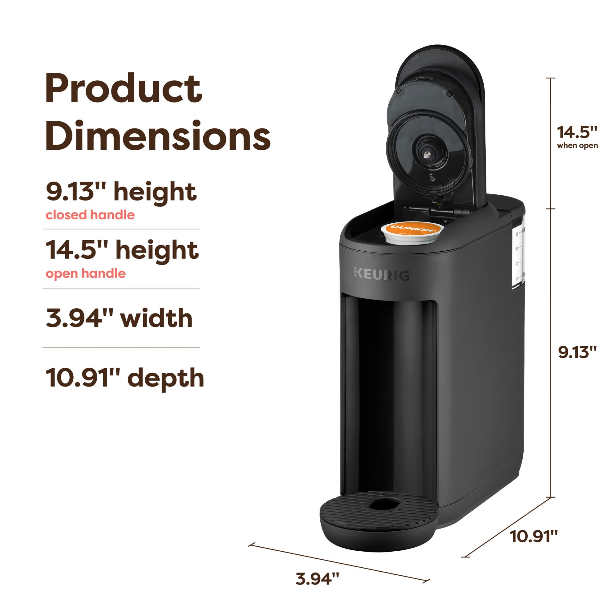 The Keurig K-Mini Mate Single Serve Coffee Maker is tiny but mighty with big flavor in an unbelievably small package. Don’t let its size fool you – this modern, sleekly designed brewer is a one-cup coffee maker that brews the perfect tasting cup. Complete with the same brewing technology as many bigger Keurig coffee machines, this mini coffee companion brews a cup up to 12oz with the flavor you love from any of our hundreds of K-Cup pod varieties. At just 4" wide, it's the smallest Keurig brewer ever, making it a major space-saver when it comes to your daily cup. Perfect for small kitchens, dorm rooms, and tiny apartments, the K-Mini Mate brewer’s compact design means it can fit almost anywhere you might want to place it. Whether you’re at home or just want to make somewhere feel like home, the K-Mini Mate brewer is your perfect travel companion. Just plug it in and you’ll have the convenience and coffee quality you love about Keurig brewers.*Cup not included*