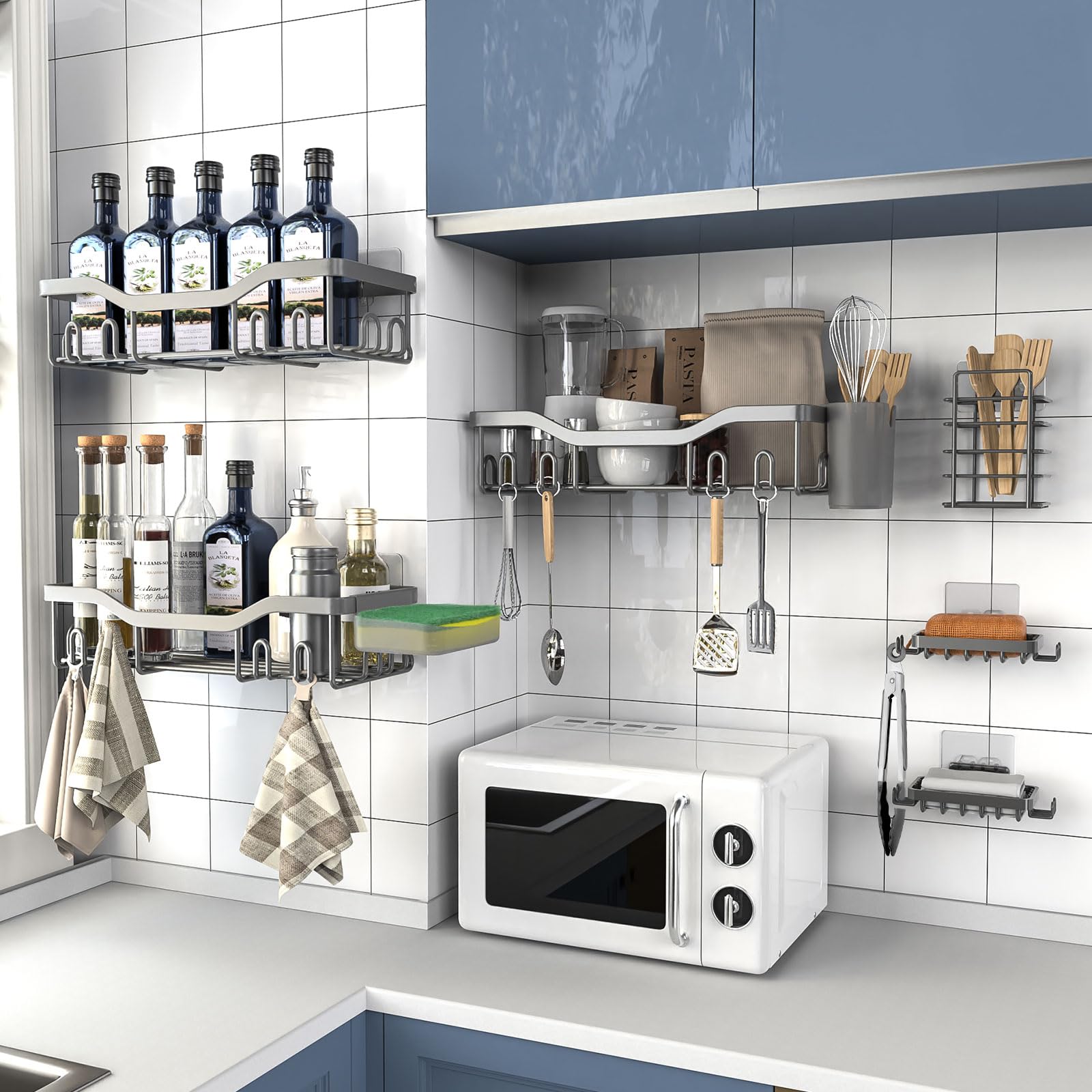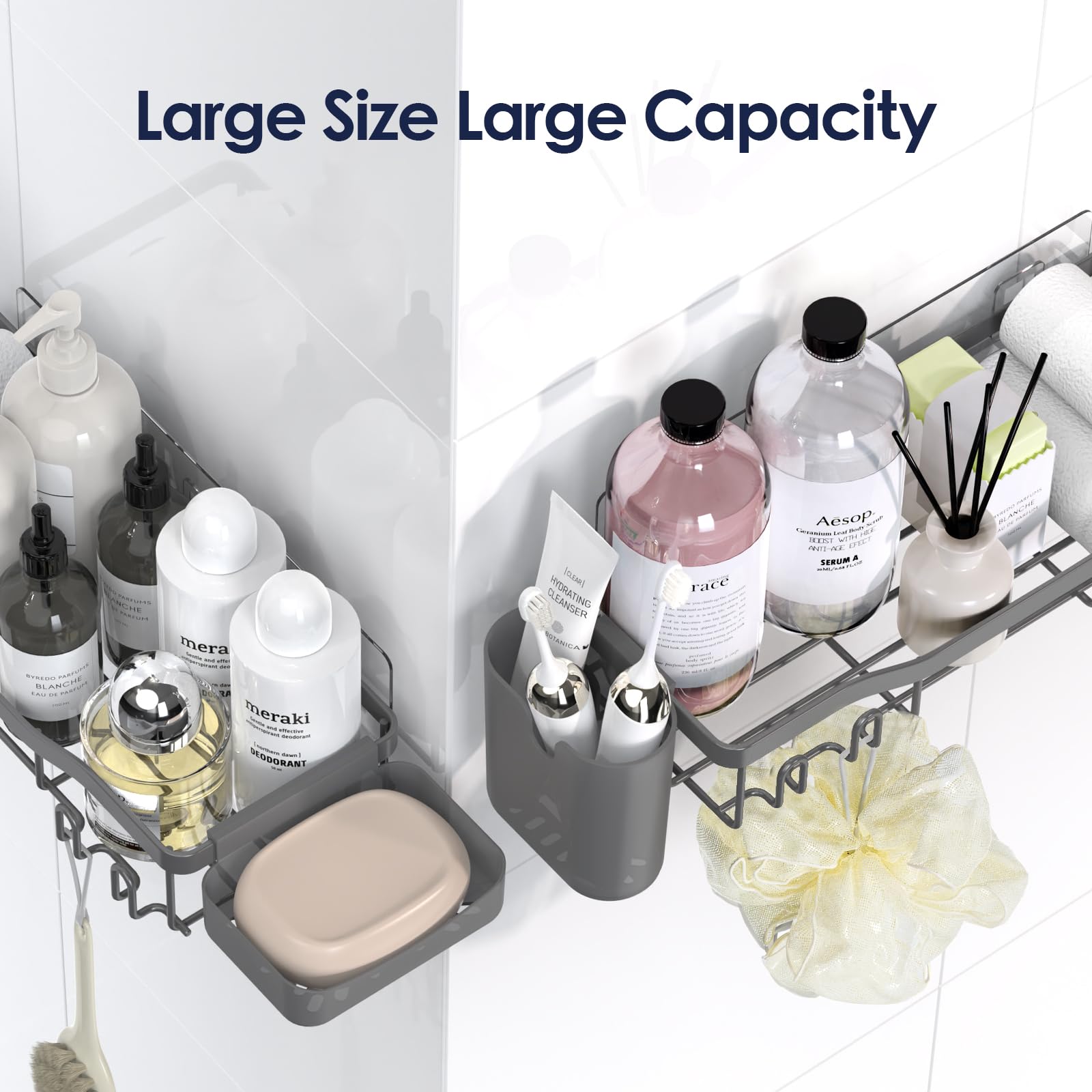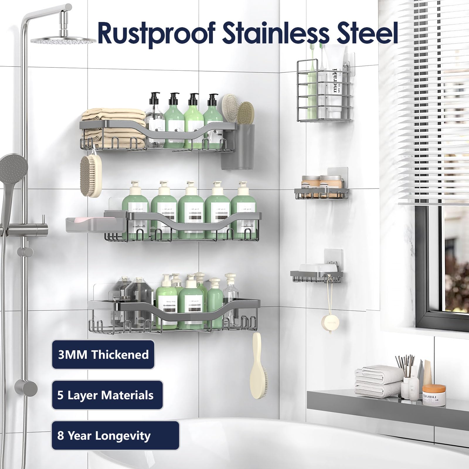Ultra Size Large Capacity Shower Caddies 8-Pack with 32 Hooks: Each extra-large shower shelf comes with 8 durable hooks, it's perfect for storing bathroom essentials, wash supplies, cooking utensils, seasonings, hats. Maximize your space with these roomy adhesive shelves, perfect for enhancing your toilet, bathroom, kitchen, RV, laundry space or tool room, no drilling needed. Consider this bathroom organizers and storage set as a thoughtful gift for family and friends