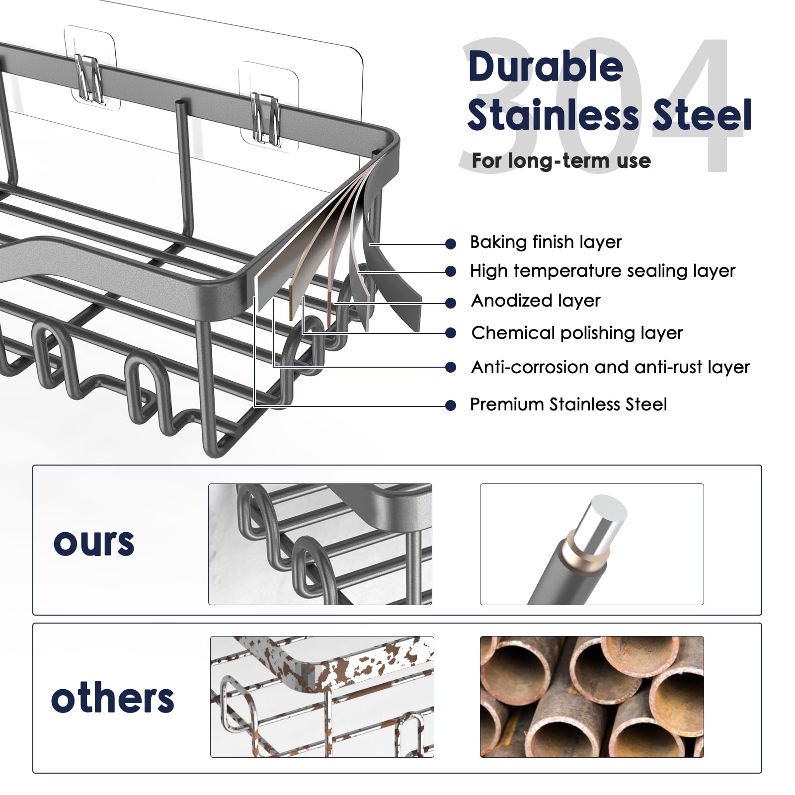 Durable Rust-Resistant Stainless Steel: Expertly crafted from top-grade 304 stainless steel, with powder-coated process, bathroom shower shelves are tough, durable, stable, rustproof and scratch-proof. NESOMI shower rack rustproof powder-coated and solid frame wire are significantly thicker, ensuring long-lasting use. It can withstand humid conditions for up to 8 years and is backed by a 8-year warranty. Hollow design ensures ventilation and drainage, easy to keep clean