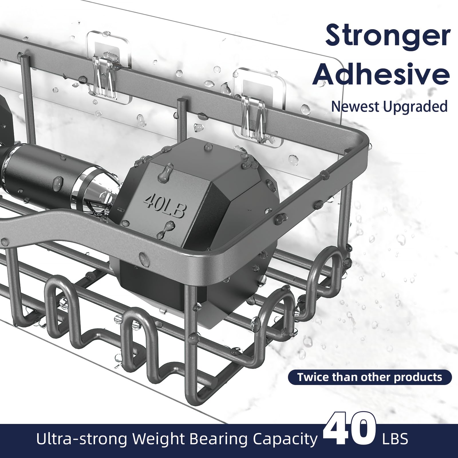 Newest Upgraded Stronger Adhesive Bathroom Caddy: The transparent traceless adhesives give ultra-strong reliability with up to 40 lbs of bearing weight, which is tested by professional institutions. The bathroom shower organizer has twice the load-bearing capacity of the old version. NESOMI bathroom shelf can be installed without drilling. The storage shelves will never worry about falling issues after proper installation, and make your family space use to the extreme