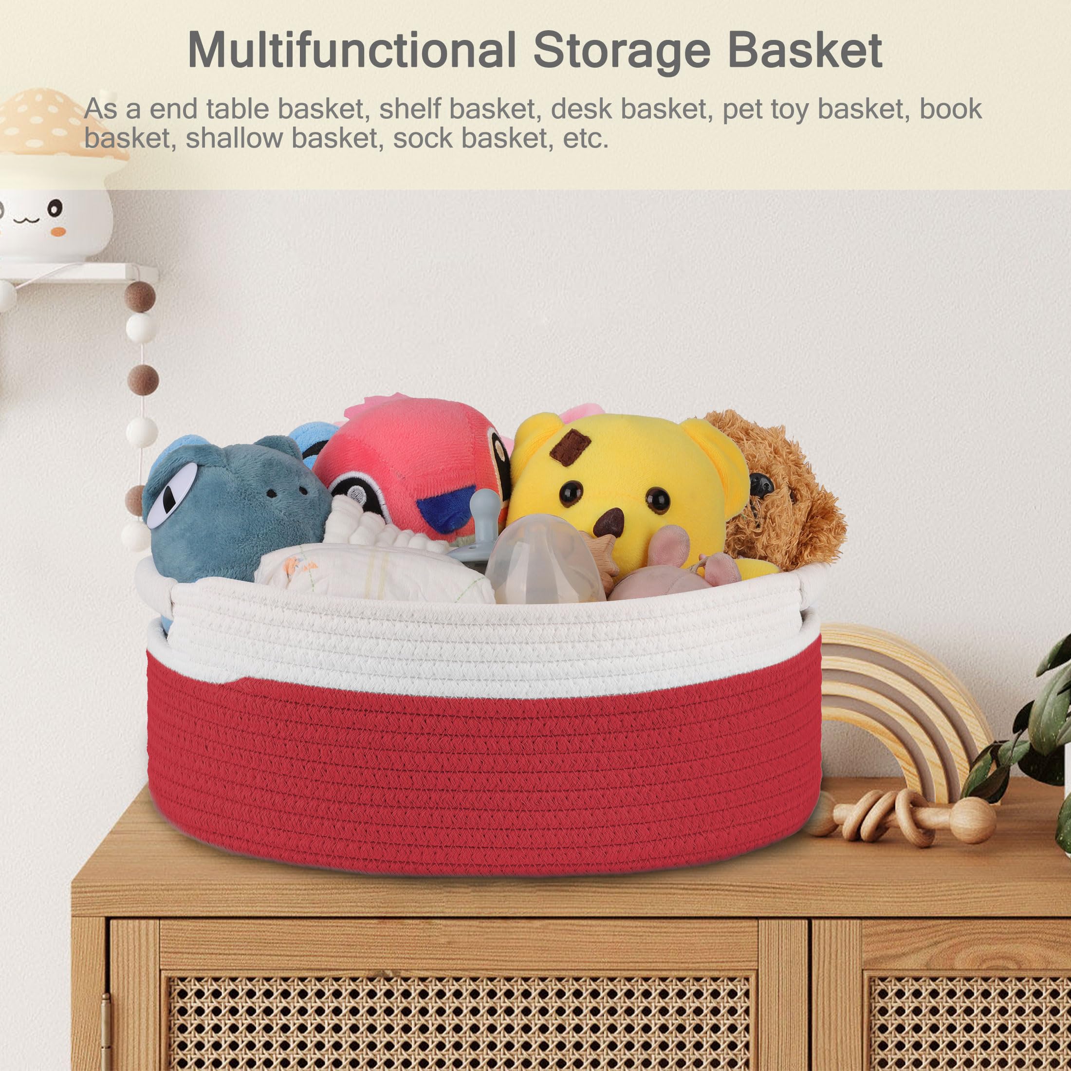 【Multifunctional Storage Basket】 Our rope storage basket is the perfect solution for keys, wallets, diapers, books, remotes, toys, makeups, and more. You can use it as a baby basket, end table basket, shelf storage basket, desk basket, kids' toy basket, book basket, shallow basket, and more. It can even be used as a pet toy basket for cats and dogs.